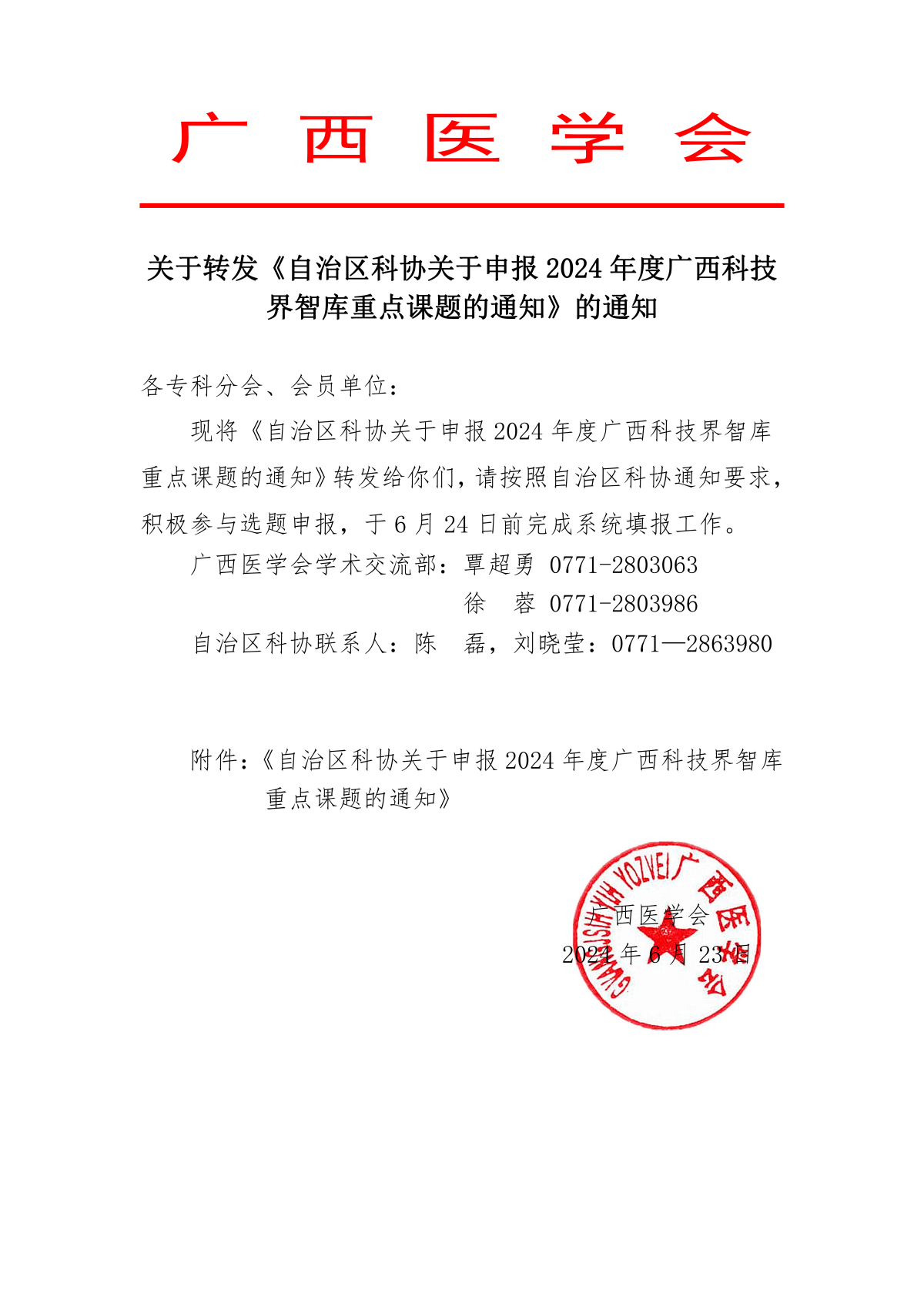 关于转发《自治区科协关于申报2024年度广西科技界智库重点课题的通知》的通知
