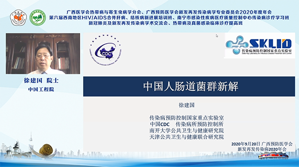 授广西医科大学副校长徐华委托,广西医科大学生命科学研究院梁浩教授代表致辞,他表示,鉴于当前新冠肺炎防控的良好阶段,总结新冠肺炎疫情防控经验,探讨后疫情时代新发再发传染性疾病的防控需求,交流重大疾病的防治的新技术,有助于推进广西乃至全国医疗教育的改革发展。相信通过本次会议专家的精彩演讲和指导下,在同仁的共同努力下,在传染病防治和研究必将取得更好的成绩。