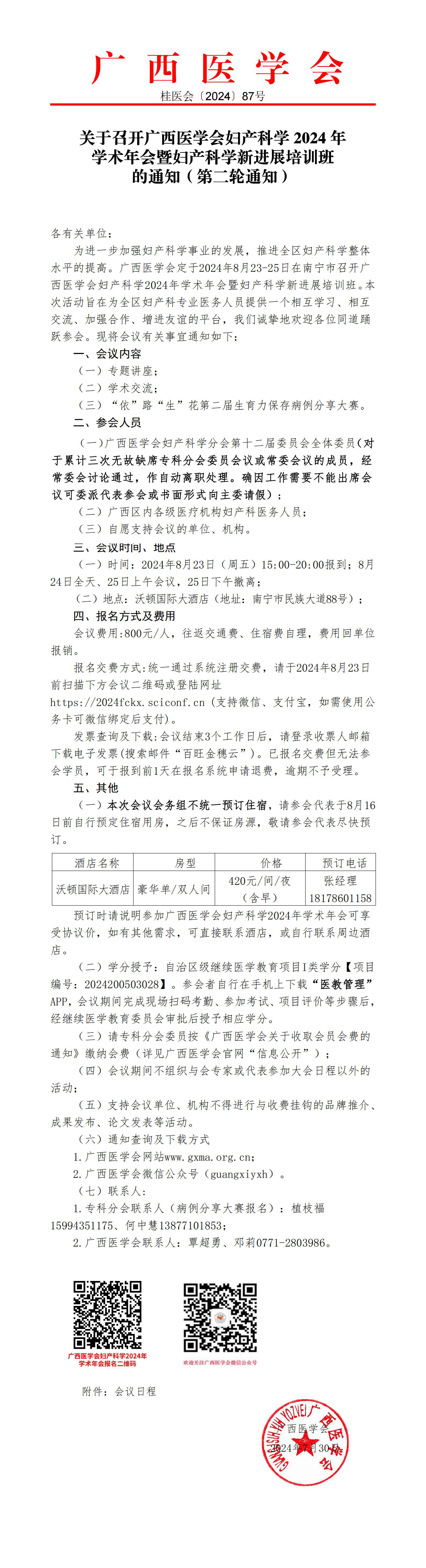 关于召开广西医学会妇产科学2024年学术年会暨妇产科学新进展培训班的通知(第二轮通知)