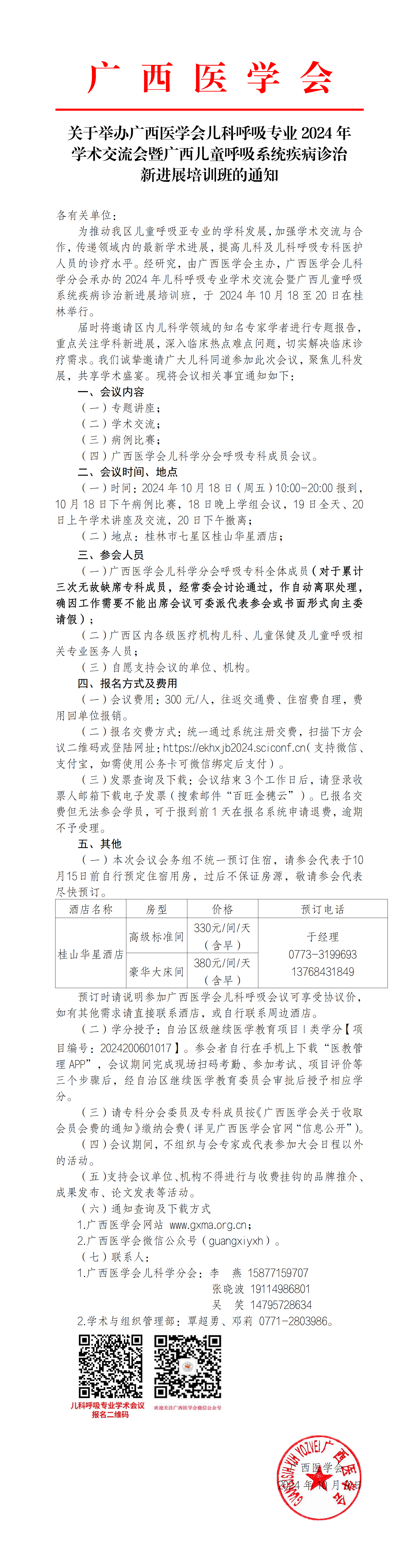 关于举办广西医学会儿科呼吸专业2024年学术交流会暨广西儿童呼吸系统疾病诊治新进展培训班的通知