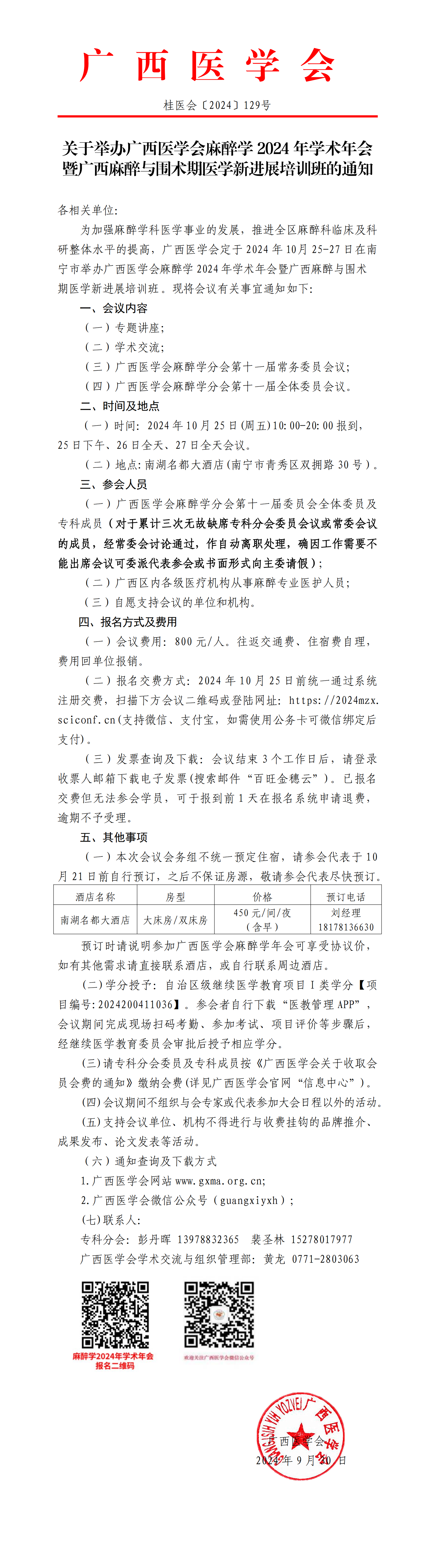 关于举办广西医学会麻醉学2024年学术年会暨广西麻醉与围术期医学新进展培训班的通知