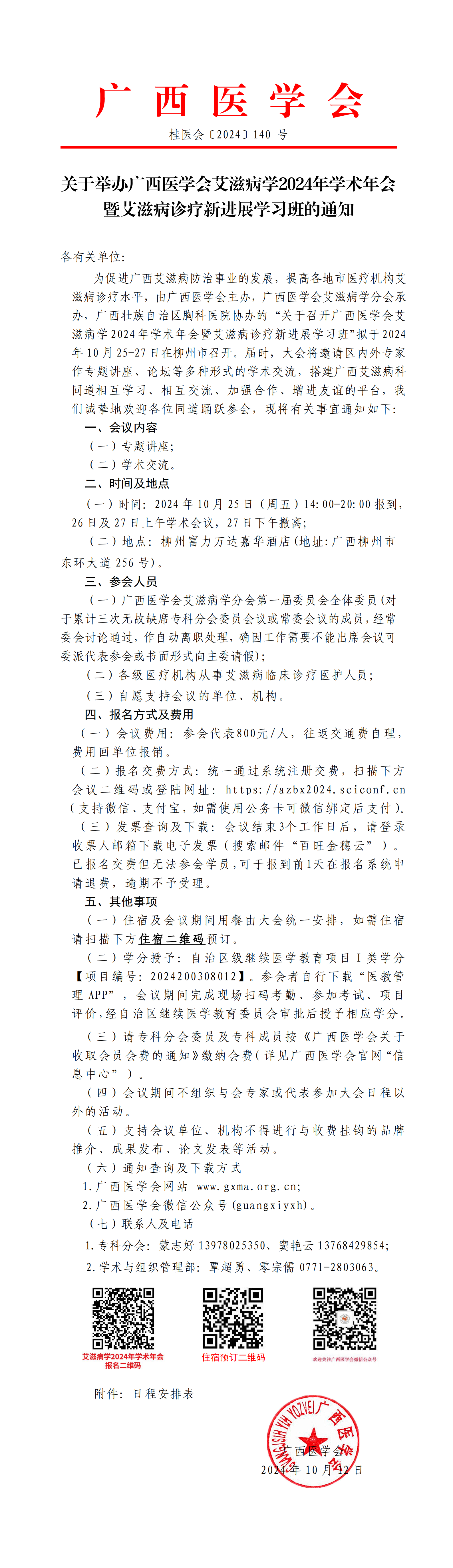 关于举办广西医学会艾滋病学2024年学术年会暨艾滋病诊疗新进展学习班的通知
