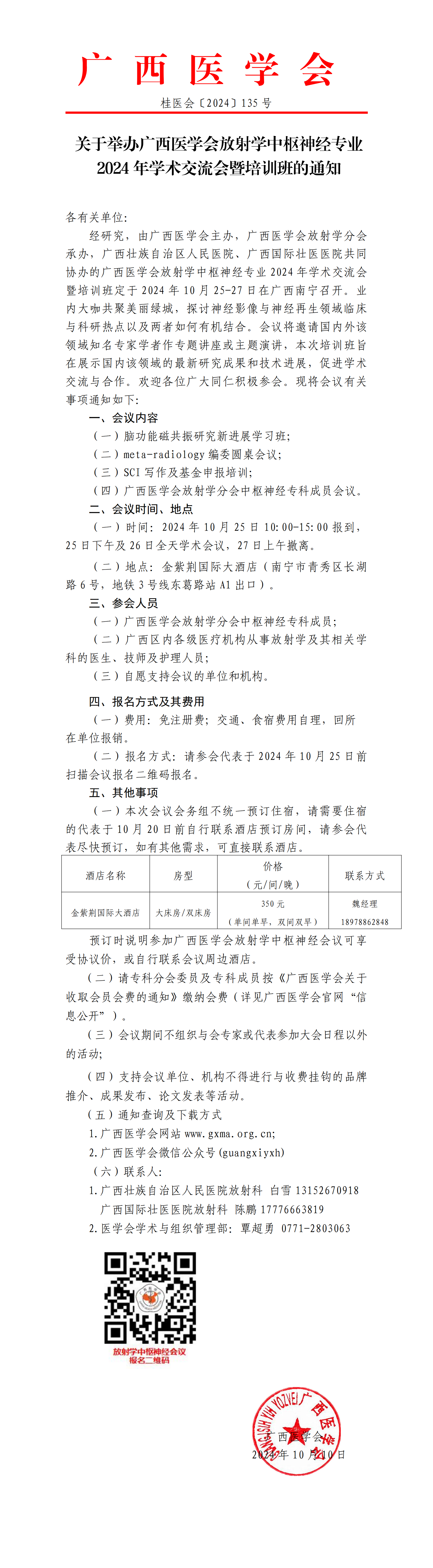 关于举办广西医学会放射学中枢神经专业2024年学术交流会暨培训班的通知