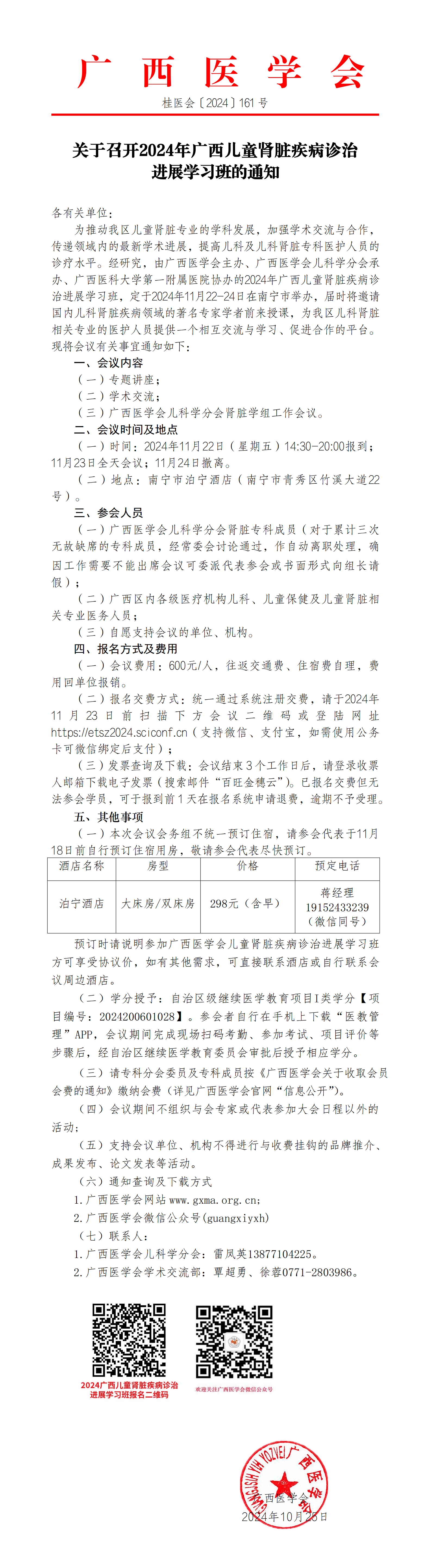 关于召开2024年广西儿童肾脏疾病诊治进展学习班的通知