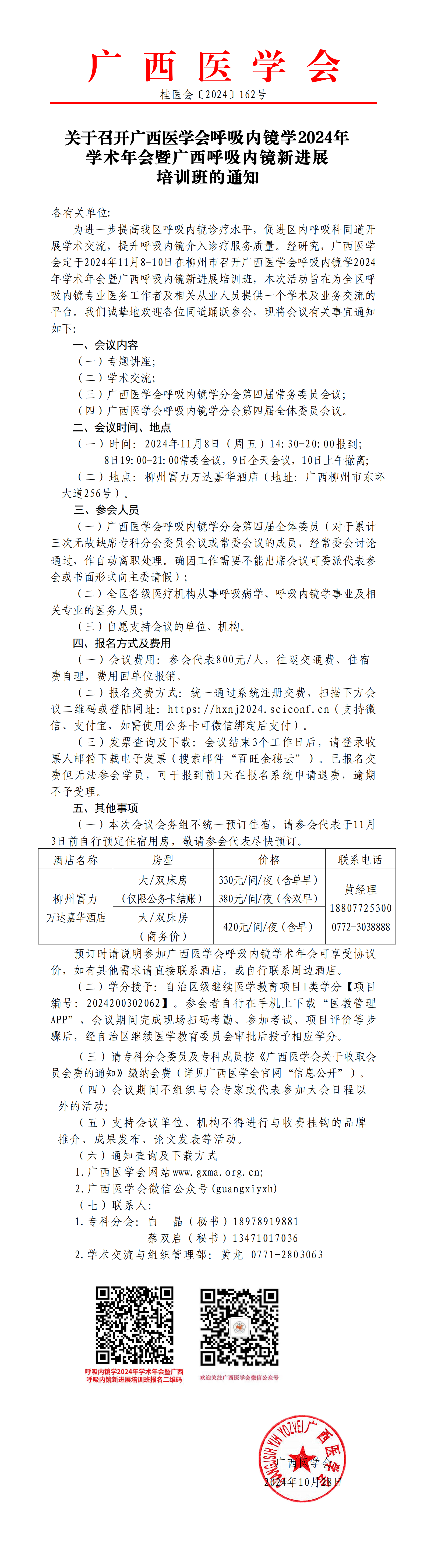 关于召开广西医学会呼吸内镜学2024年学术年会暨广西呼吸内镜新进展培训班的通知
