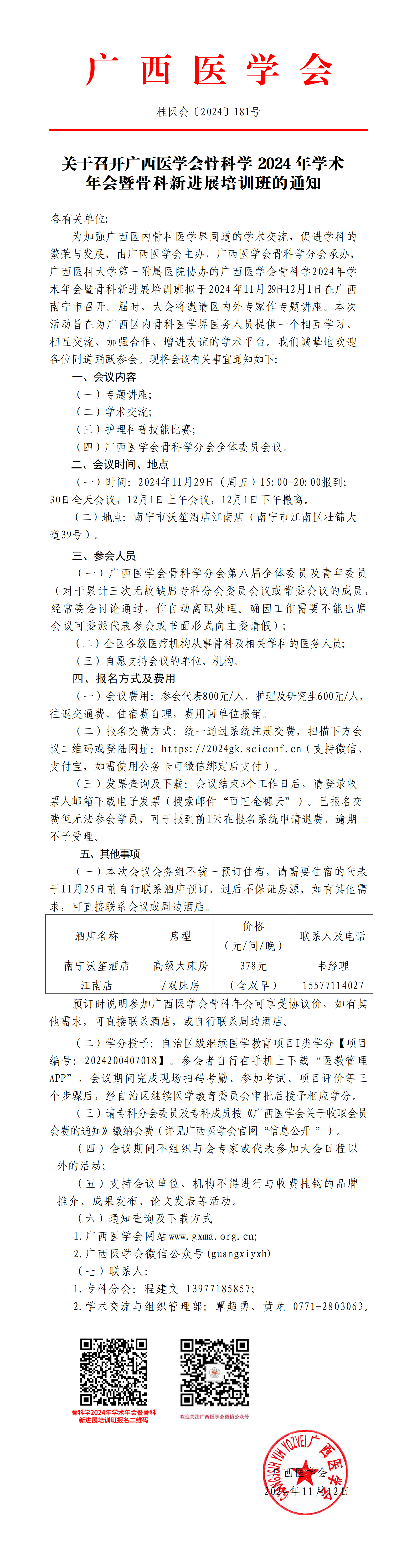关于召开广西医学会骨科学 2024 年学术年会暨骨科新进展培训班的通知