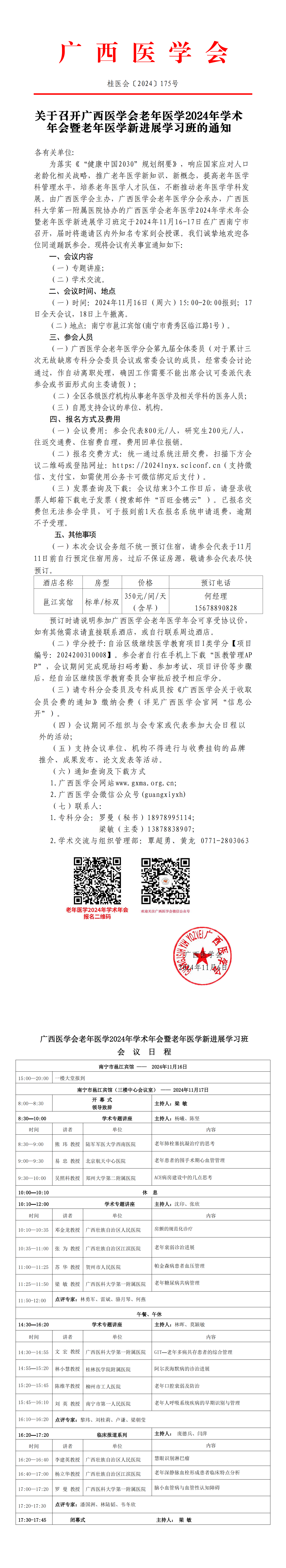 关于召开广西医学会老年医学2024年学术年会暨老年医学新进展学习班的通知