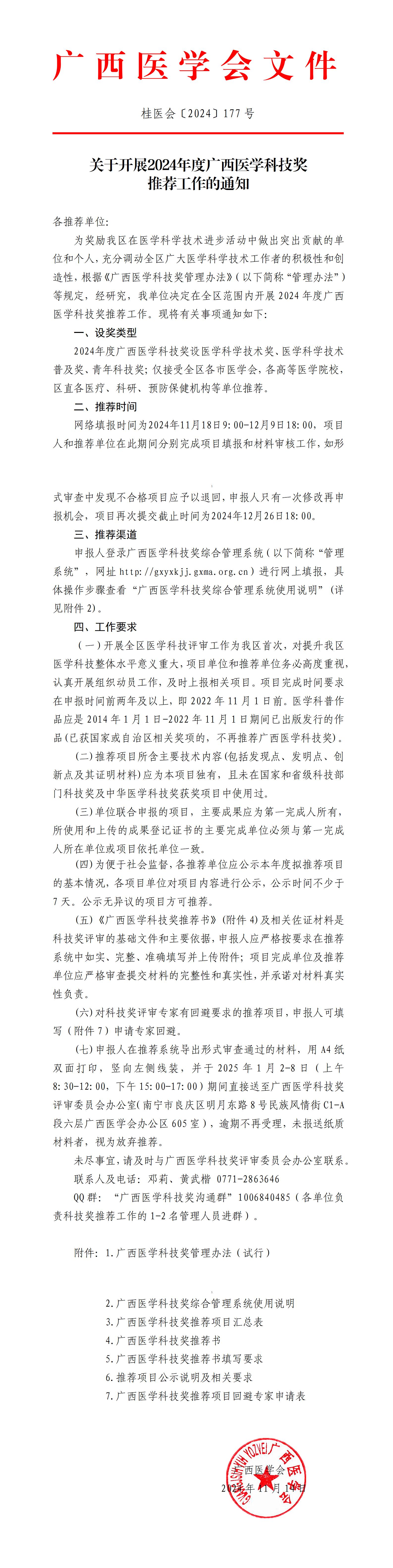 >>>>>2024年度广西医学科技奖通知及附件 下载