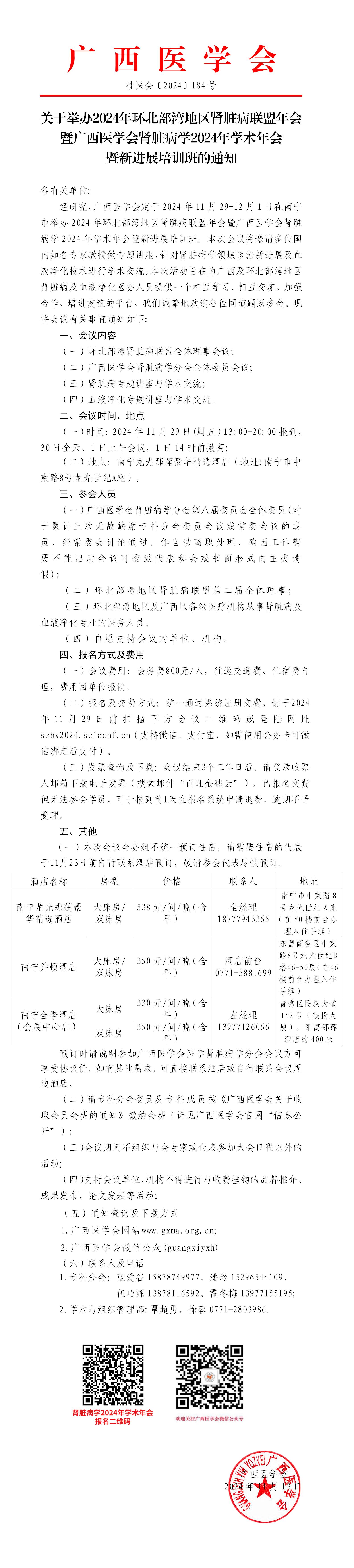 关于举办2024年环北部湾地区肾脏病联盟年会暨广西医学会肾脏病学2024年学术年会暨新进展培训班的通知