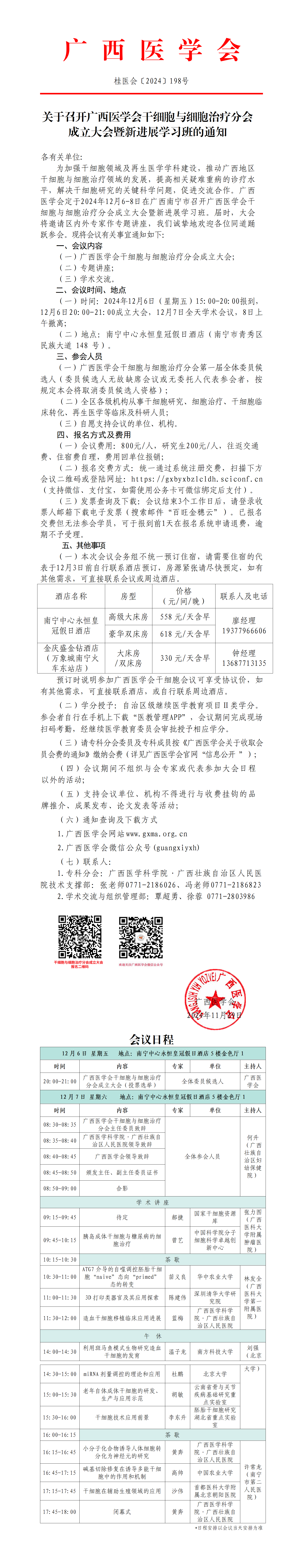 关于召开广西医学会干细胞与细胞治疗分会成立大会暨新进展学习班的通知