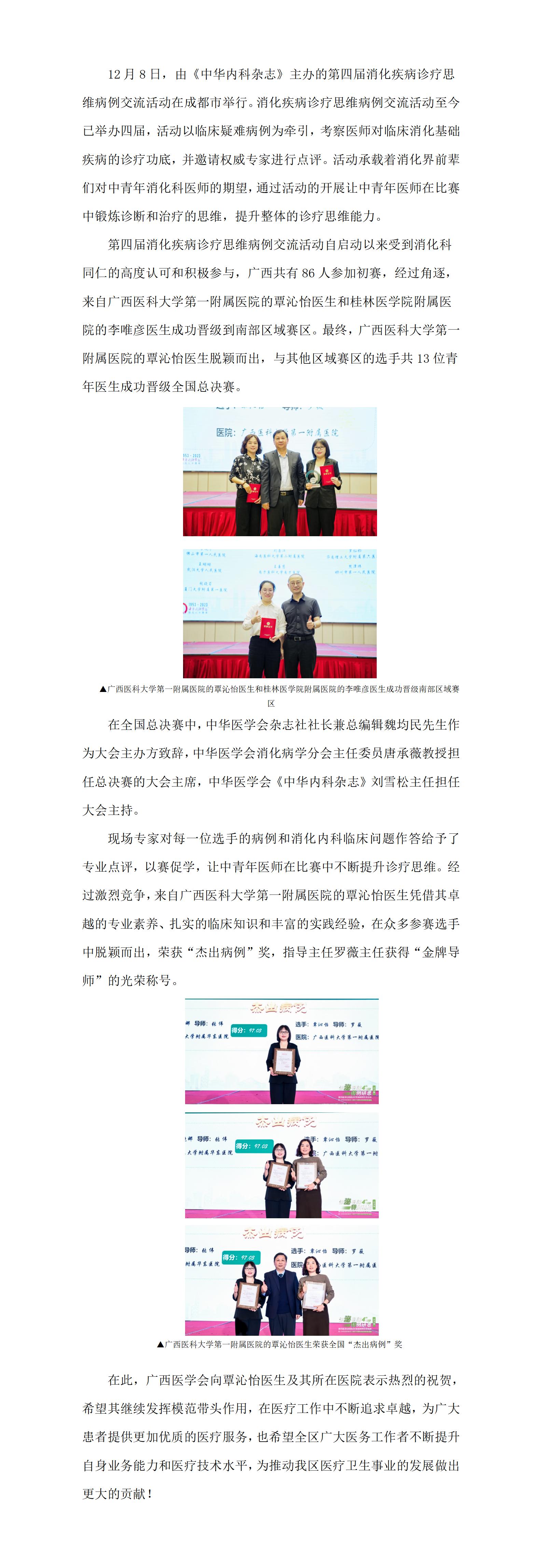 喜报!广西选手覃沁怡医生获得消化疾病诊疗思维病例交流活动全国总决赛杰出病例奖!