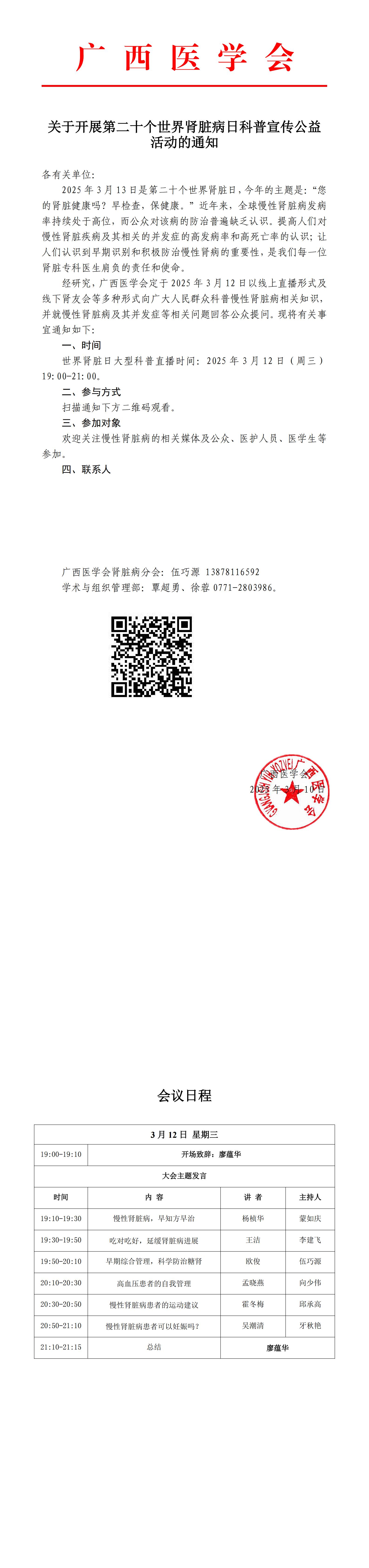 关于开展第二十个世界肾脏病日科普宣传公益活动的通知
