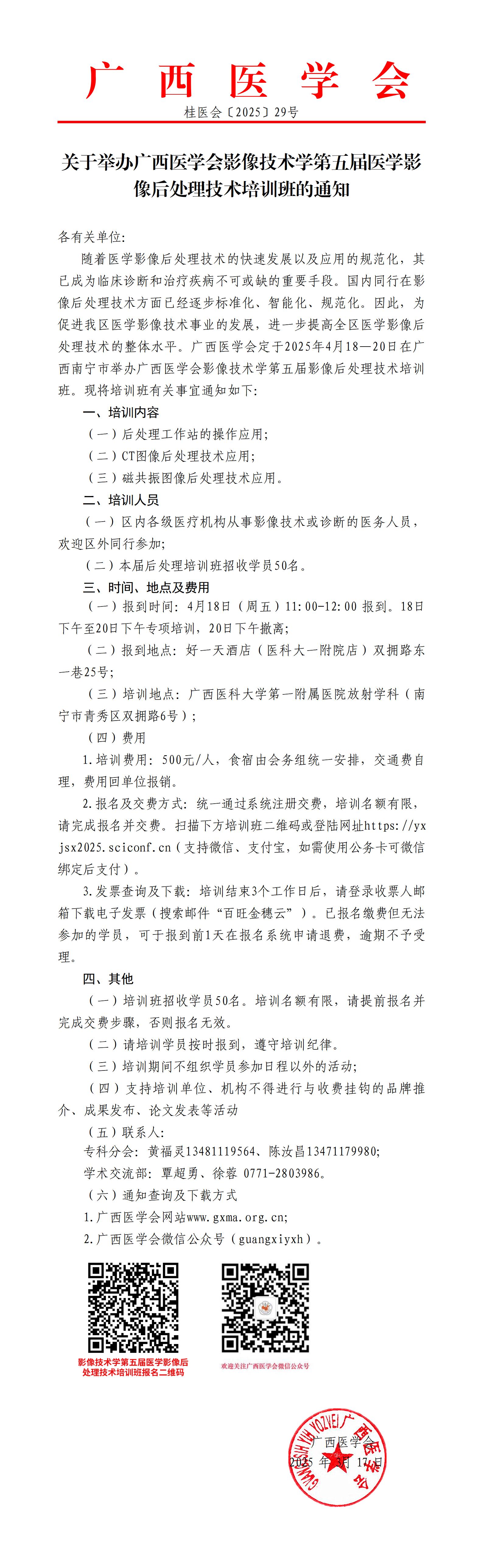 关于举办广西医学会影像技术学第五届医学影像后处理技术培训班的通知