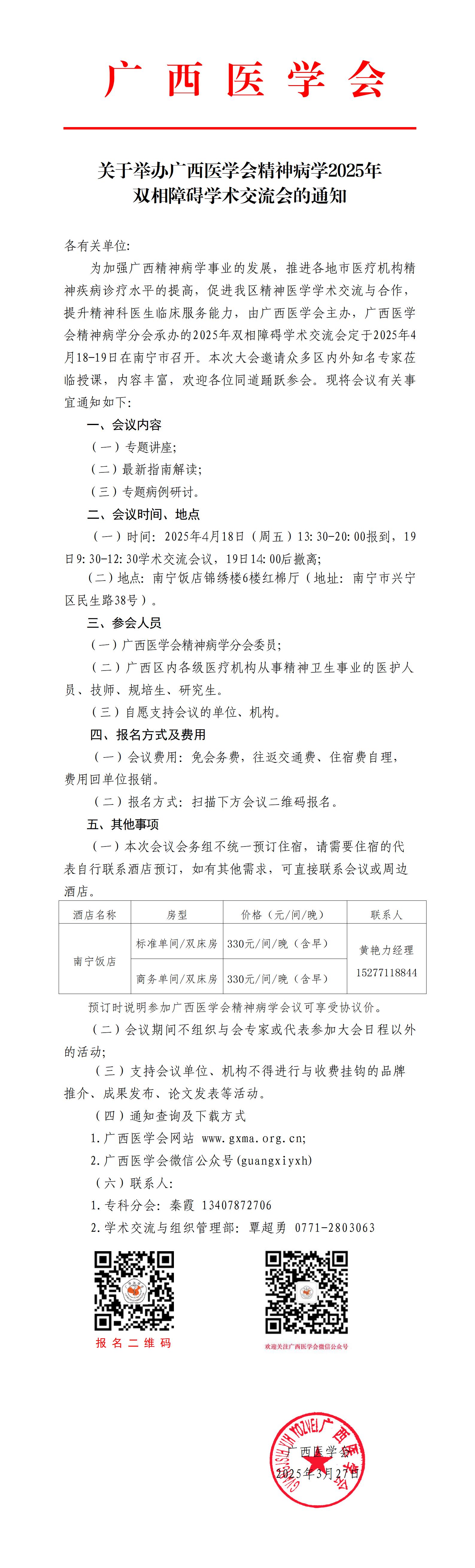 关于举办广西医学会精神病学2025年双相障碍学术交流会的通知