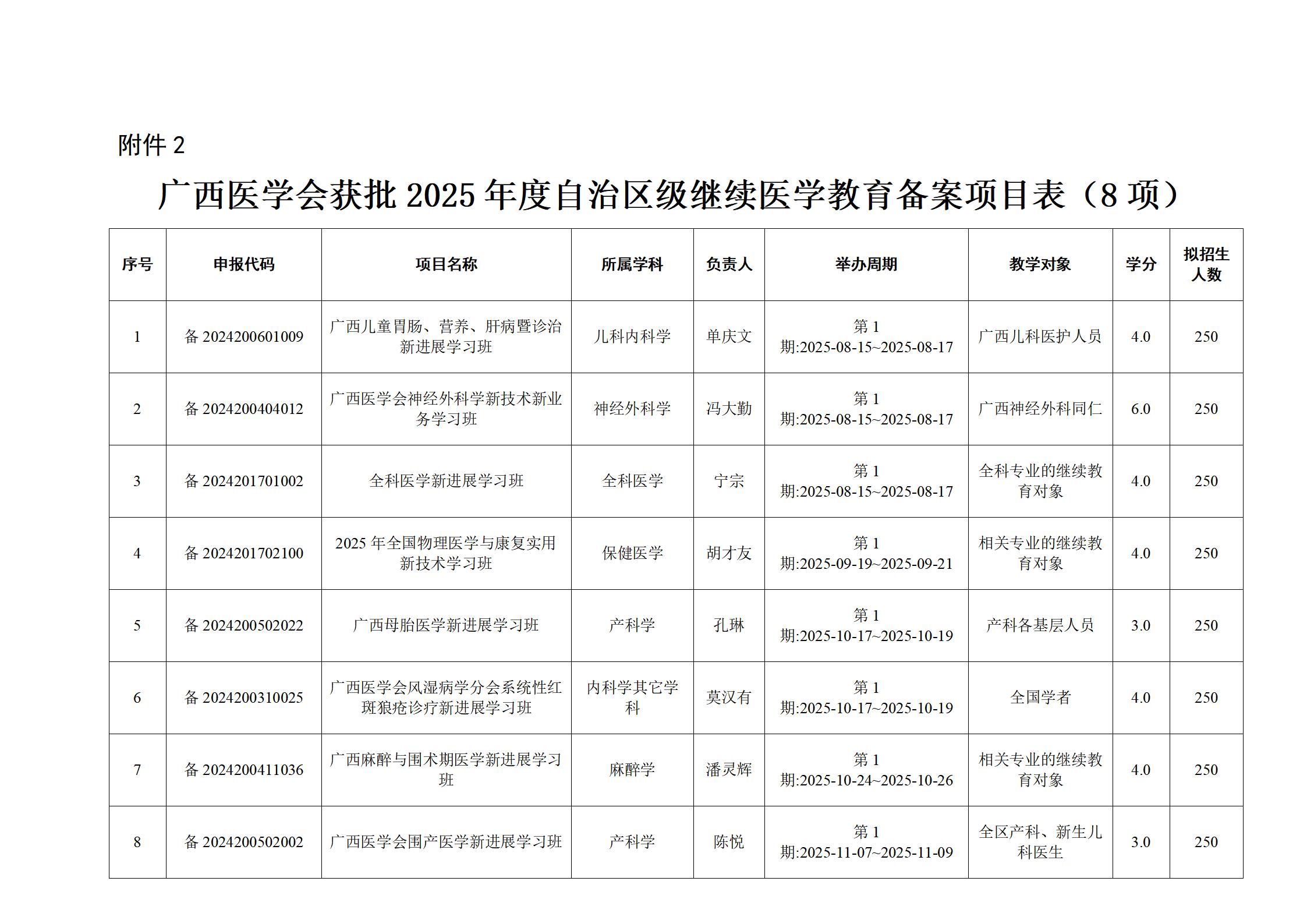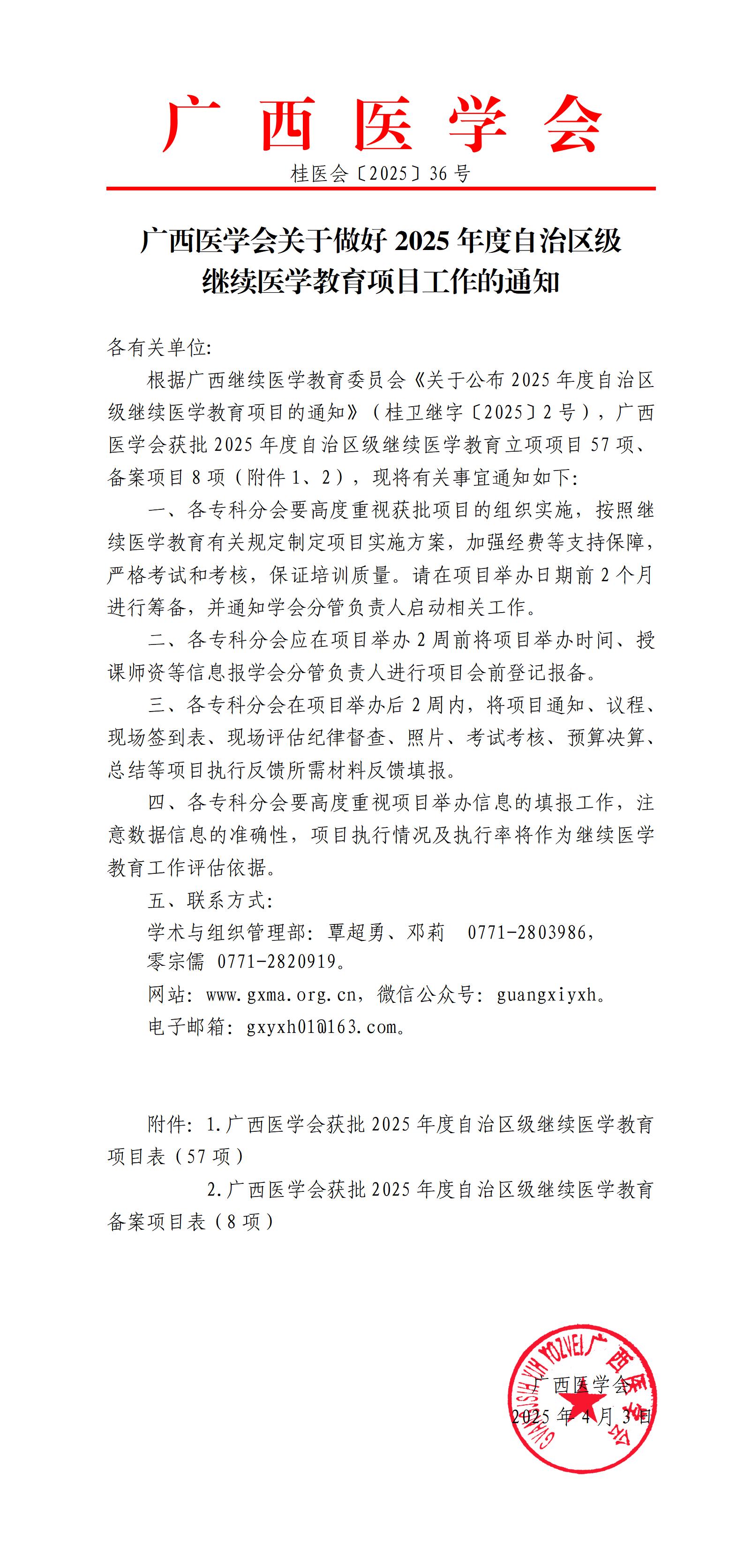广西医学会关于做好2025年度自治区级 继续医学教育项目工作的通知