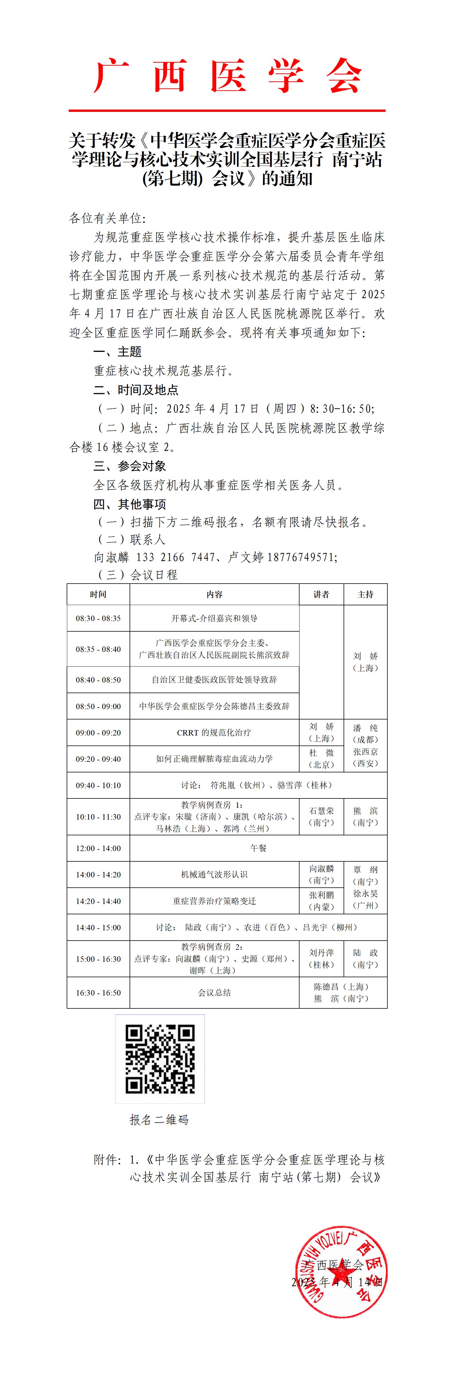 关于转发《中华医学会重症医学分会重症医学理论与核心技术实训全国基层行 南宁站(第七期) 会议》的通知