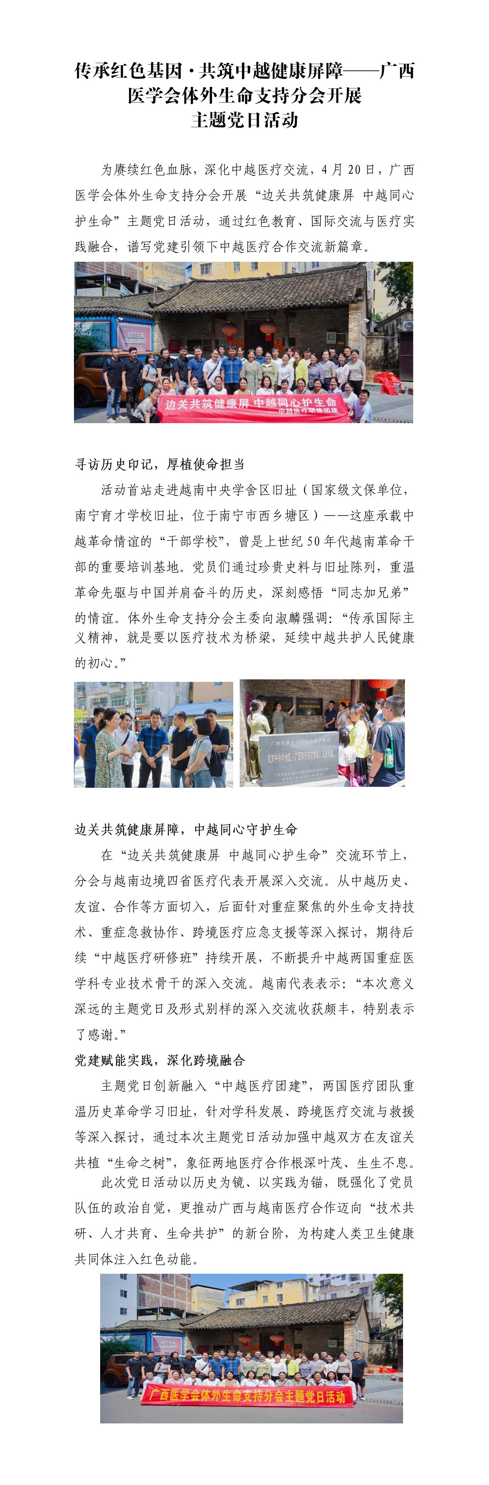 传承红色基因·共筑中越健康屏障——广西医学会体外生命支持分会开展主题党日活动