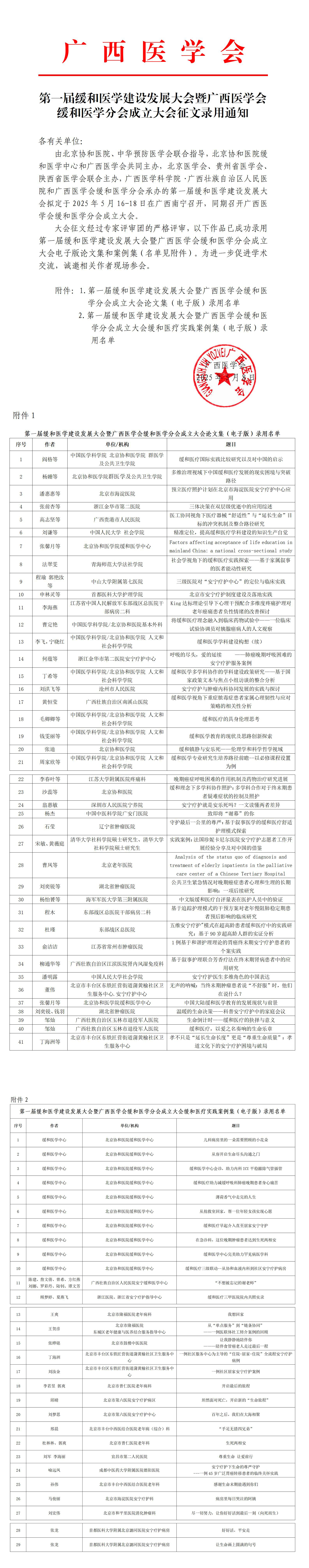 第一届缓和医学建设发展大会暨广西医学会缓和医学分会成立大会征文录用通知