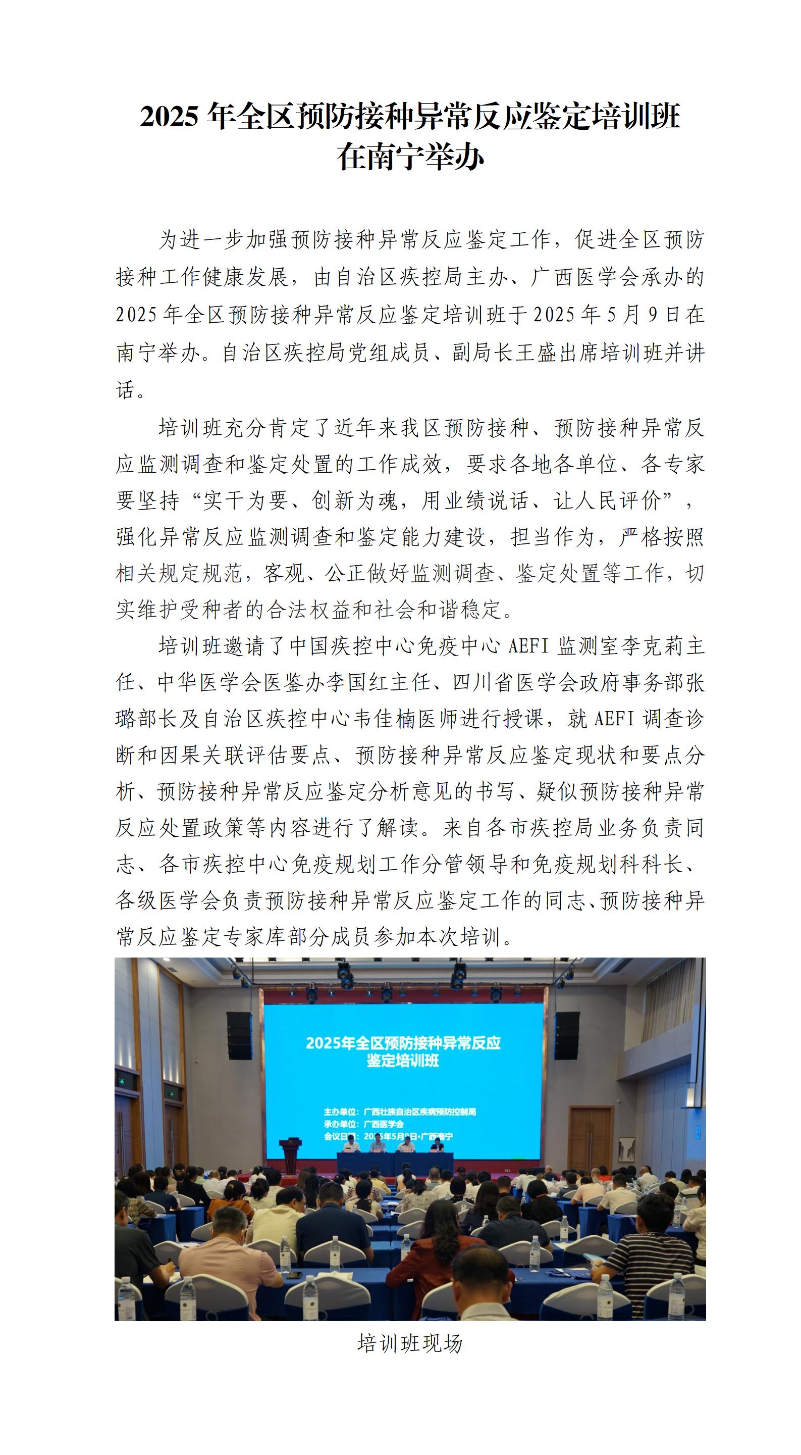 2025年全区预防接种异常反应鉴定培训班在南宁举办