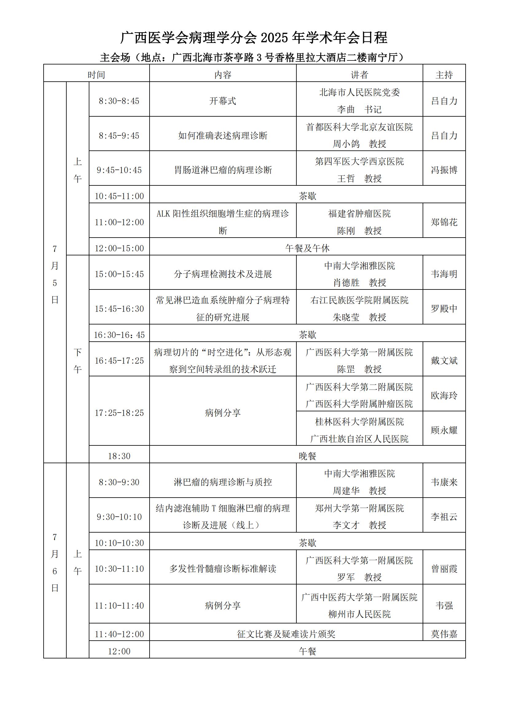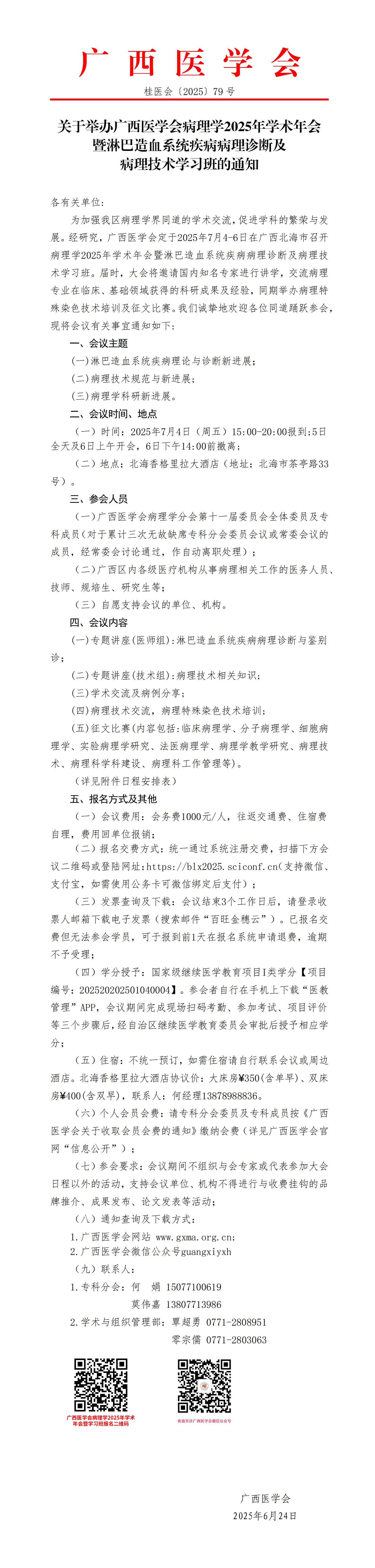 关于举办广西医学会病理学2025年学术年会暨淋巴造血系统疾病病理诊断及病理技术学习班的通知