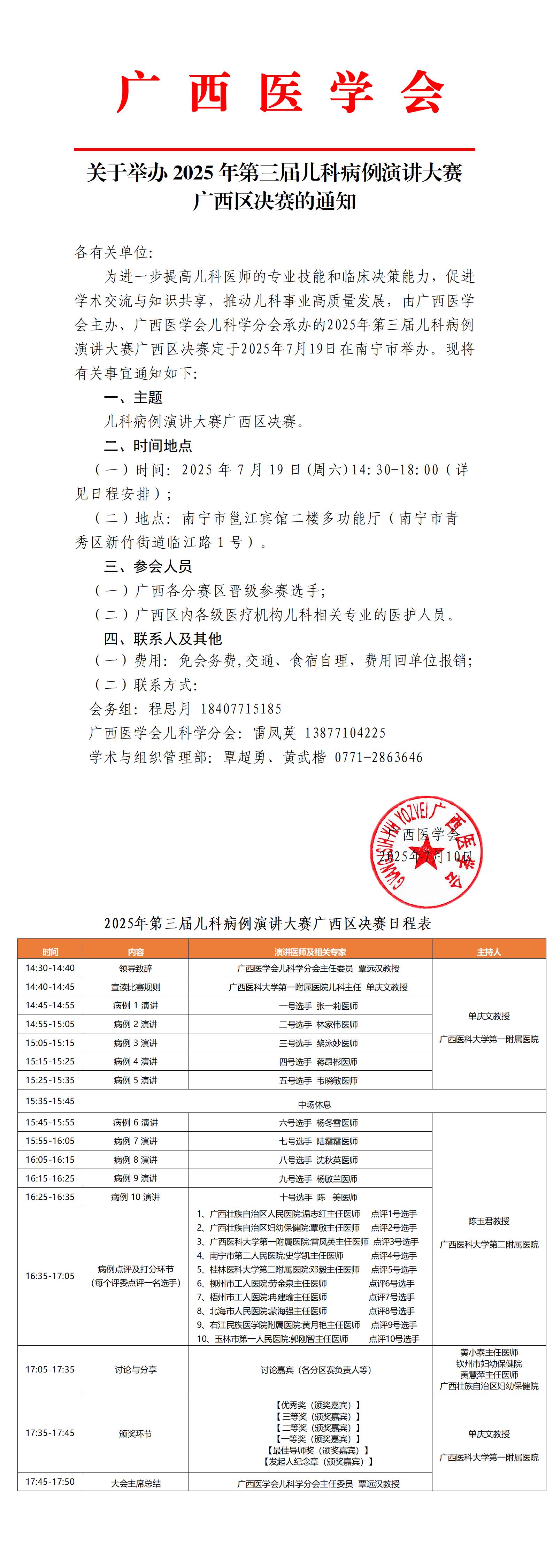 关于举办2025年第三届儿科病例演讲大赛广西区决赛的通知