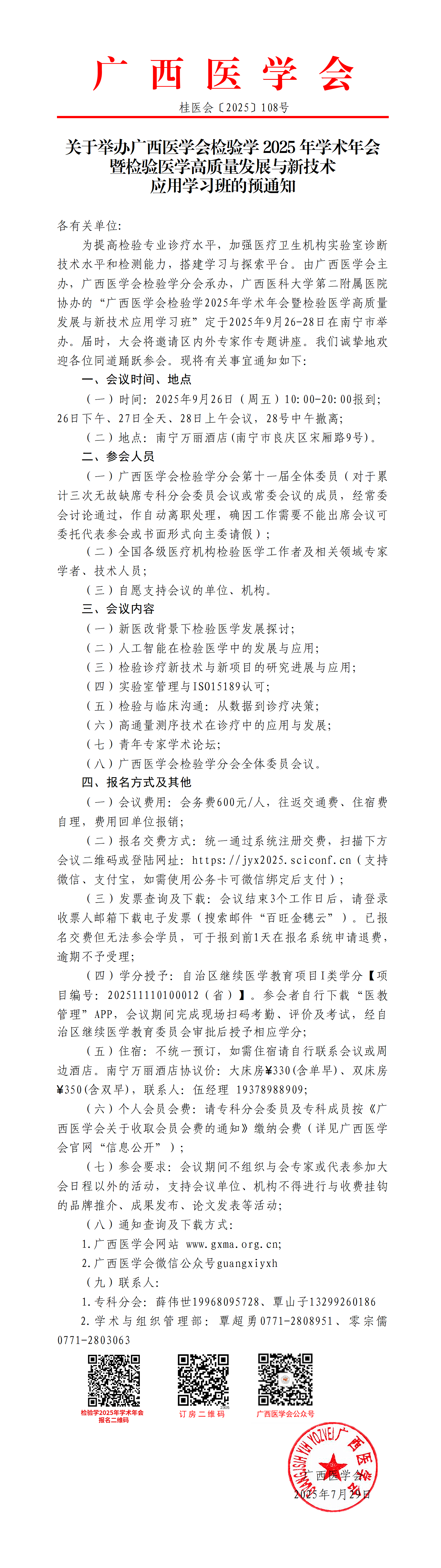 关于召开广西医学会科技创新与成果转化学分会成立大会暨医学成果转化核心能力建设培训班的通知
