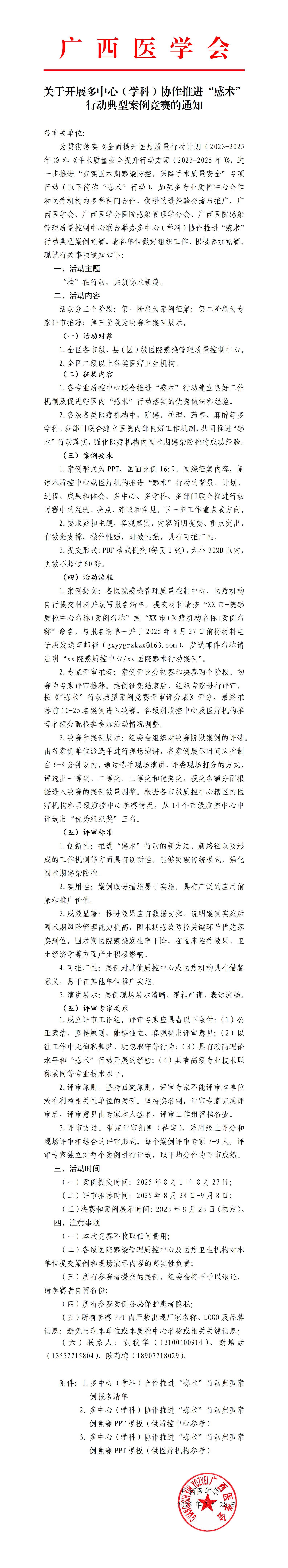 关于开展多中心(学科)协作推进“感术”行动典型案例竞赛的通知