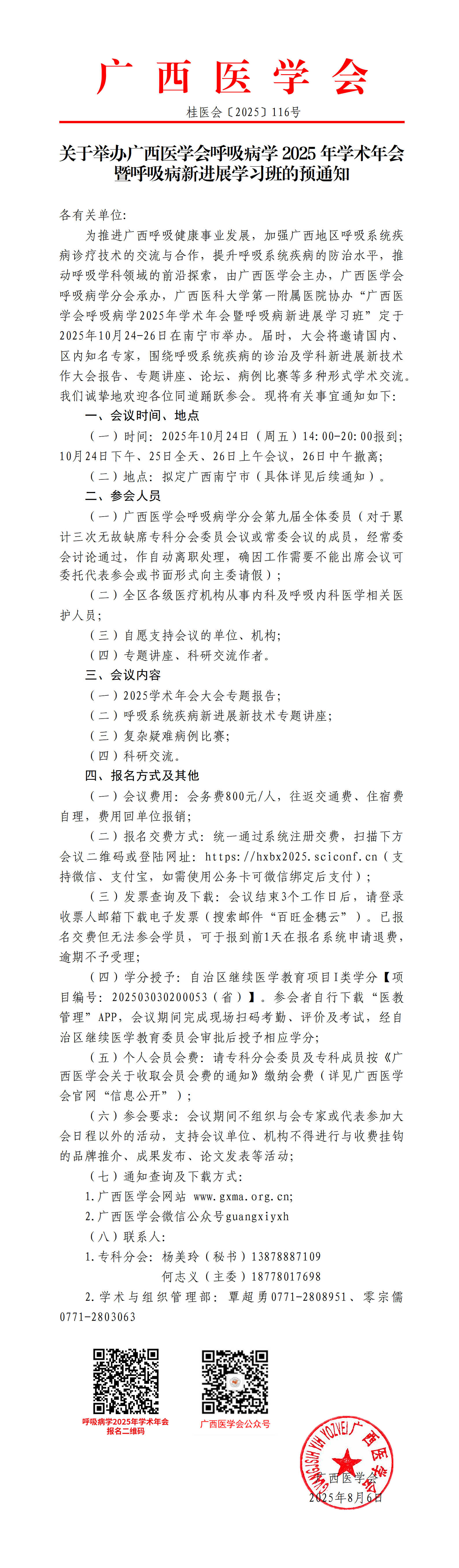 关于举办广西医学会呼吸病学2025年学术年会暨呼吸病新进展学习班的预通知