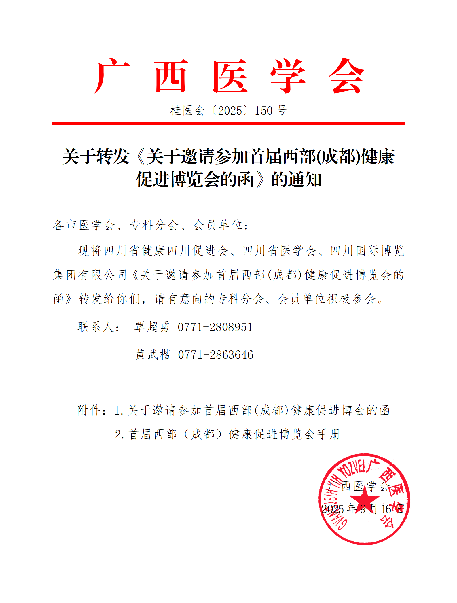 关于转发《关于邀请参加首届西部(成都)健康 促进博览会的函》的通知