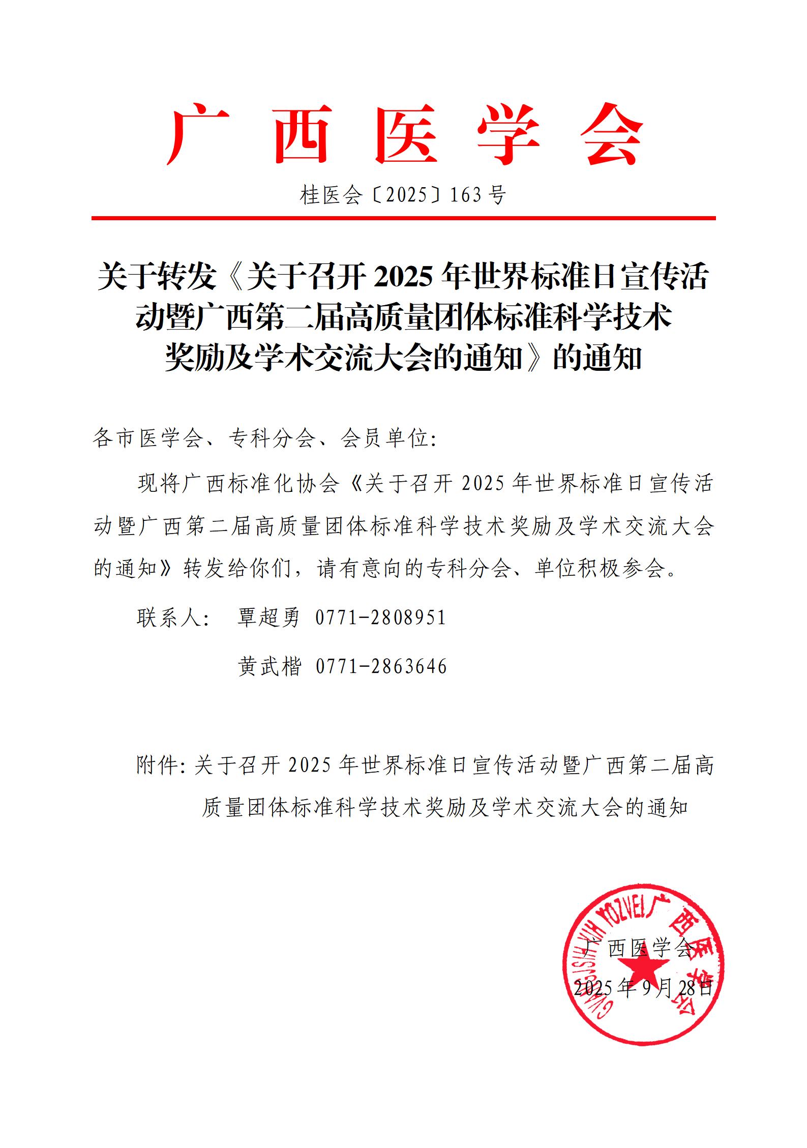 关于转发《关于召开2025年世界标准日宣传活动暨广西第二届高质量团体标准科学技术奖励及学术交流大会的通知》的通知