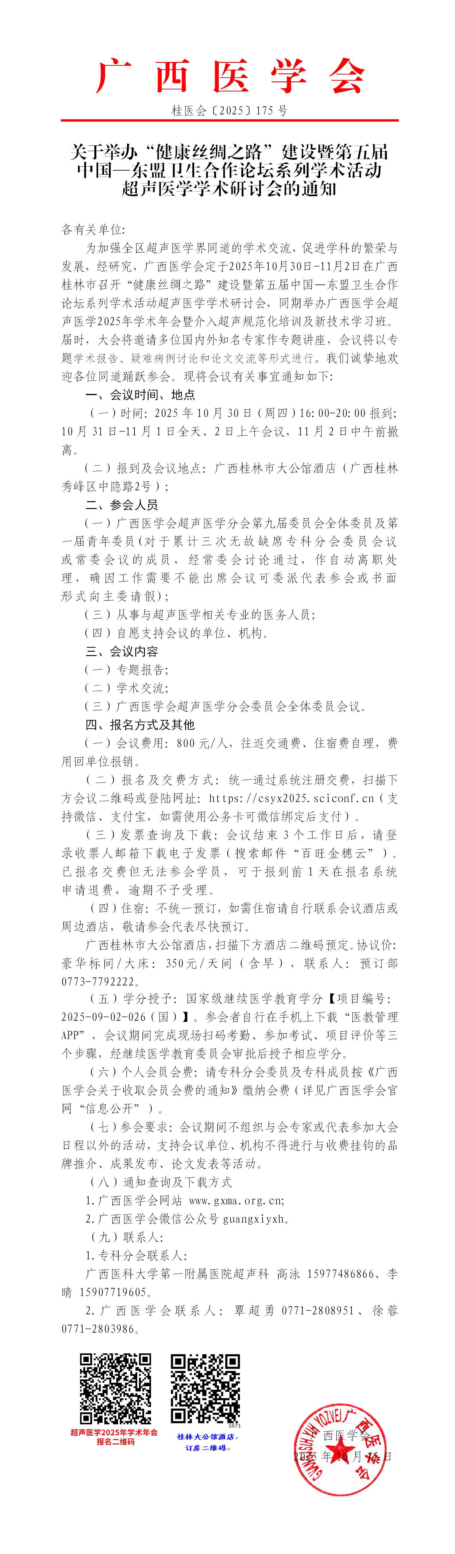 关于举办“健康丝绸之路”建设暨第五届中国—东盟卫生合作论坛系列学术活动超声医学学术研讨会的通知