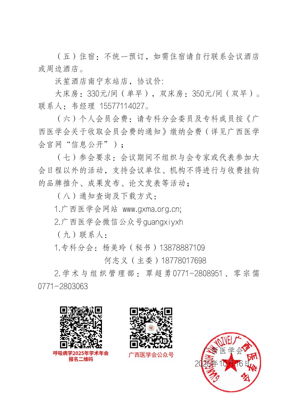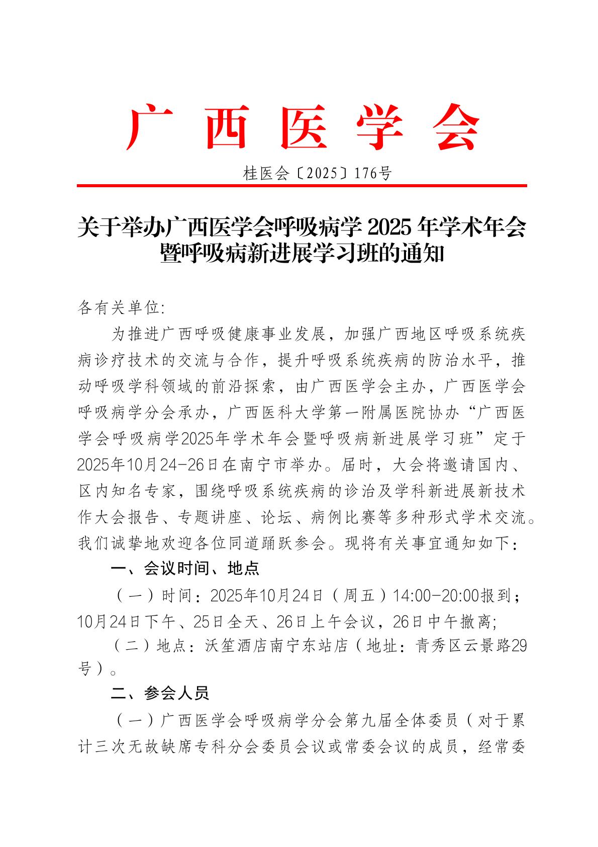 关于举办广西医学会呼吸病学2025年学术年会暨呼吸病新进展学习班的通知