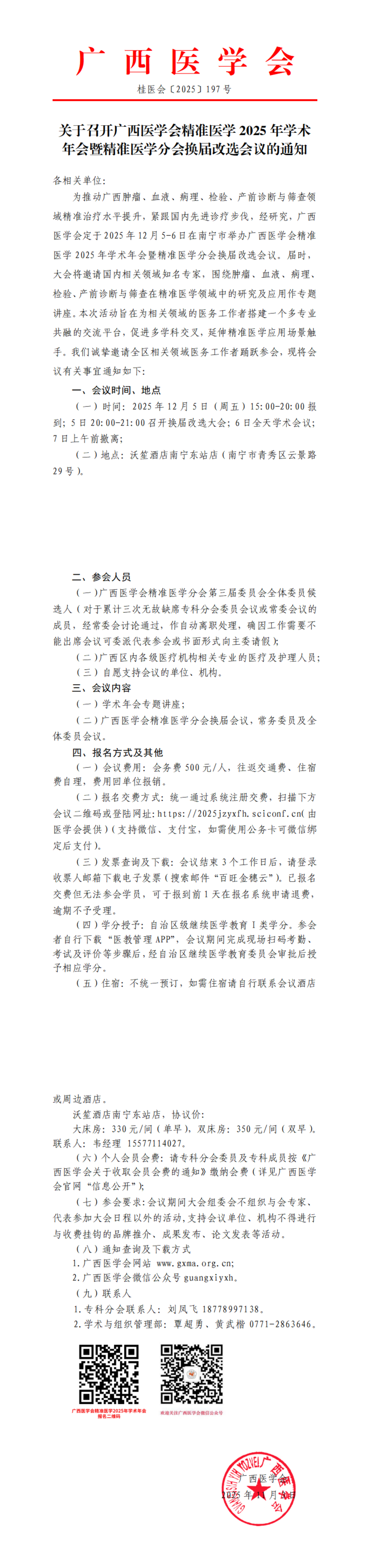 关于召开广西医学会精准医学2025年学术年会暨精准医学分会换届改选会议的通知