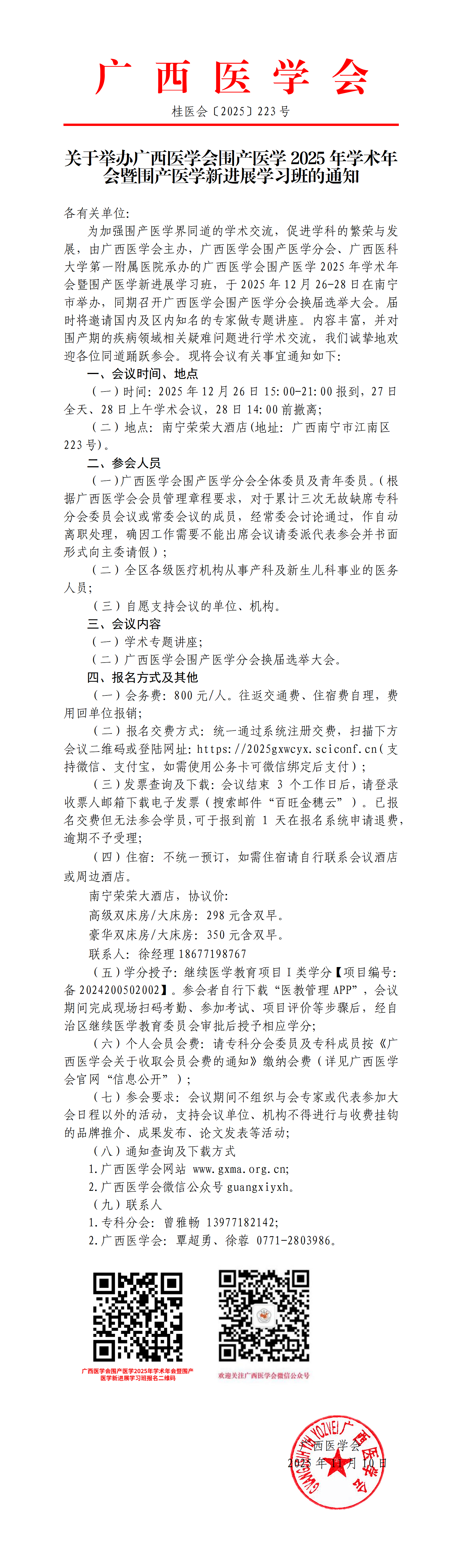 关于举办广西医学会围产医学2025年学术年会暨围产医学新进展学习班的通知