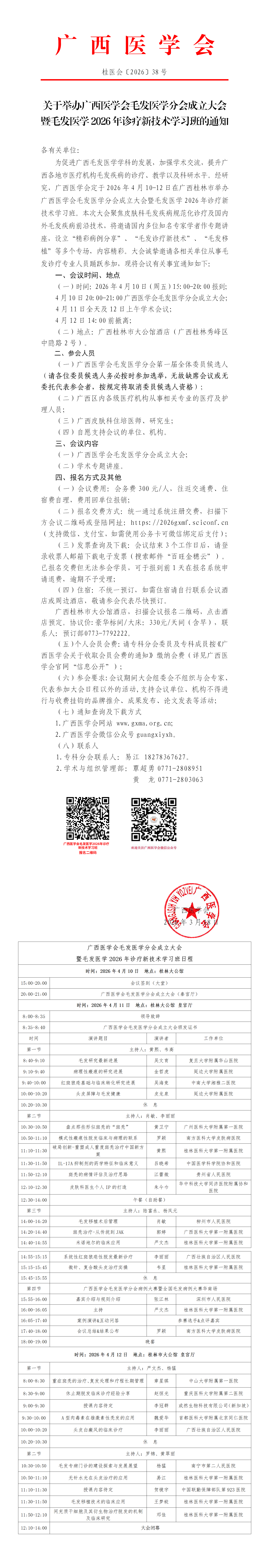 关于举办广西医学会毛发医学分会成立大会暨毛发医学2026年诊疗新技术学习班的通知