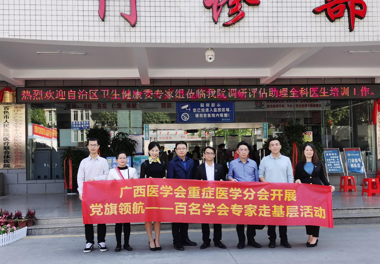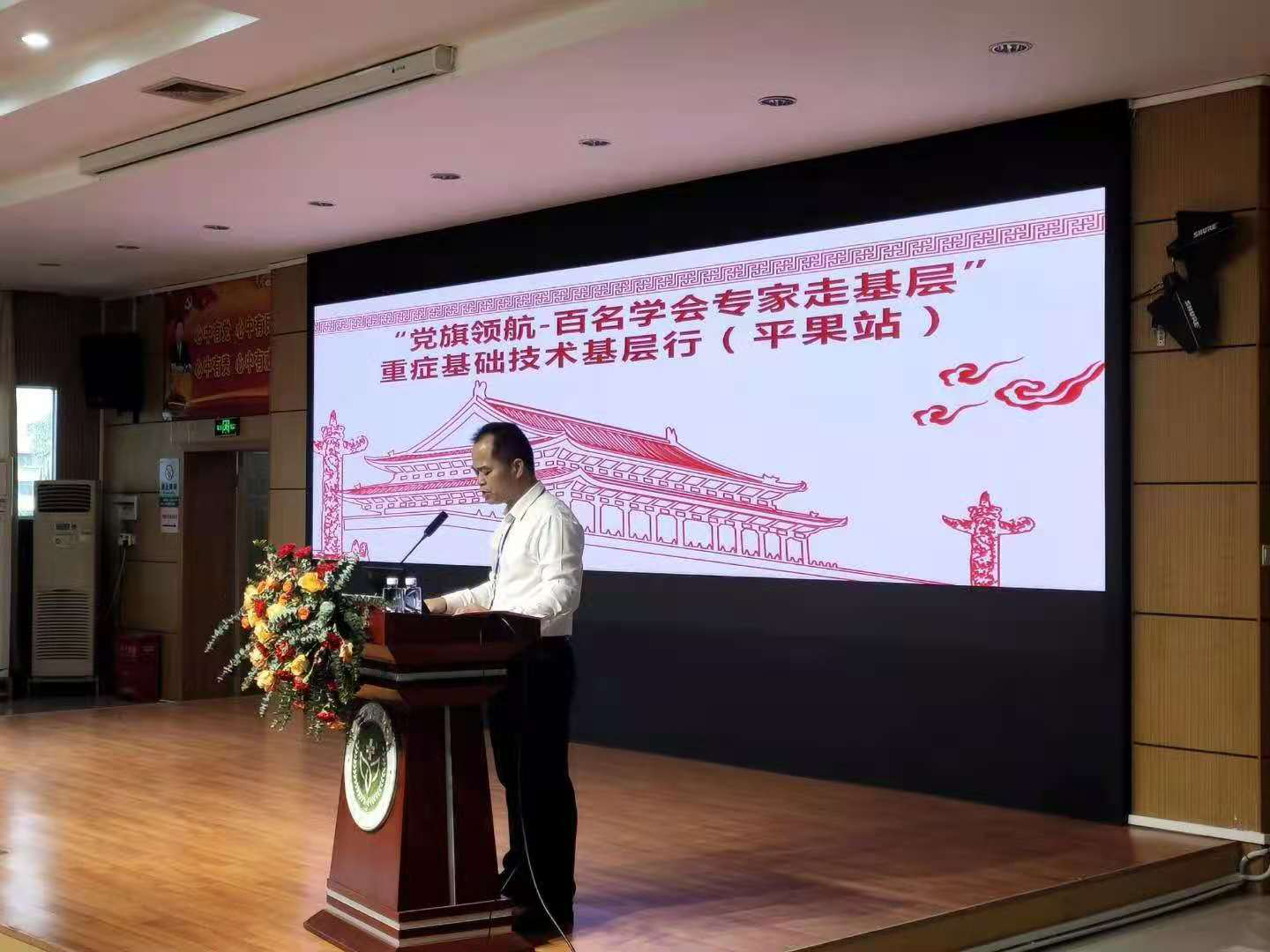 为进一步提升广西区内重症医学整体水平,加强与基层医院密切合作,2020年11月11日,由广西医学会主办,广西医学会重症医学分会、广西壮族自治区人民医院组织开展“党旗领航——百名学会专家走基层”活动。学会对此次活动十分重视,重症医学分会主委熊滨携专家团队到平果市人民医院实地督查指导,开展重症基础技术方面的交流和学术培训,平果市人民医院各科室及邻近各级市、县医院及基层卫生院约100多名医疗工作者参加本次活动。广西医学会学术交流部及广西医学会科技志愿者服务队全程积极参与本次活动。