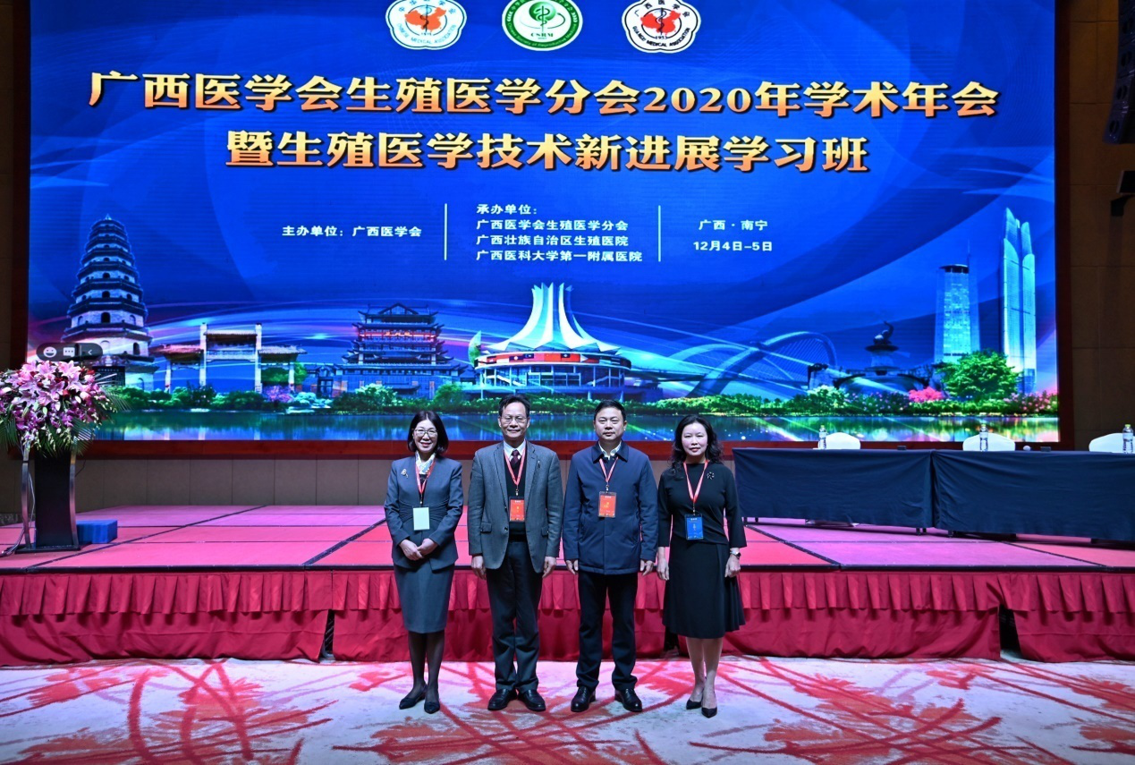 自治区卫生健康委妇幼健康处处长黎君君、二级调研员唐小岚、广西医学会秘书长许建荣、广西医学会生殖医学分会主任委员、本次大会主席、覃爱平教授、广西壮族自治区生殖医院党委书记谢丹尼、副书记兼副院长林忠、副院长孙燕、甘肃省妇幼保健院倪亚莉教授、解放军东部战区总医院姚兵教授、中南大学湘雅医院李艳萍教授、中山大学附属第一医院邓明芬护士长、四川大学华西第二医院马黔红教授、厦门市妇幼保健院李萍教授、福建医科大学附属第二医院李鸿江教授亲临盛会现场。此外,北京协和医院邓成艳教授、浙江大学医学院附属邵逸夫医院张松英教授、福建省妇幼保健院郑备红教授、美国休斯顿生育研究所王维华教授也均以线上授课方式参与盛会。