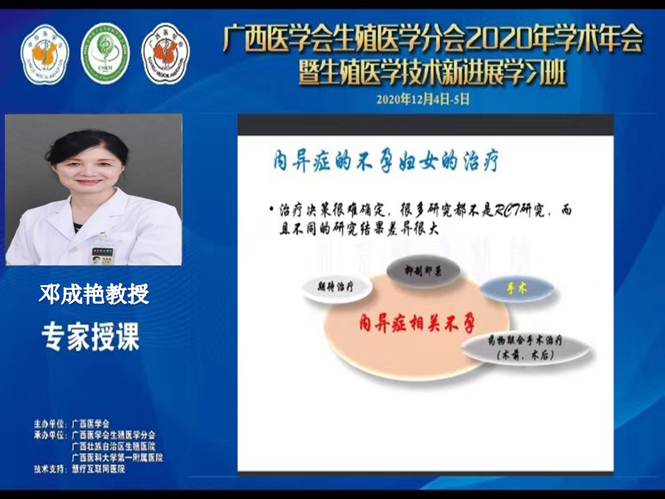 南宁市第二人民医院丘映教授讲解了“子宫内膜异位症不孕患者排卵障碍的临床处理策略”