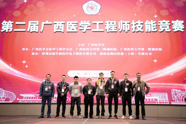 本次大会同期举办了“第二届广西医学工程师技能竞赛”,全区共四支队伍角逐冠军。本次大赛还邀请了广西医科大学生物医学工程系莫华教授、黄代政主任、广西医疗器械检测中心吴维民书记、广西卫生健康委员会规划处梁学轩主任等专家担任评委。比赛分为知识问答、维修、质控三个环节。经过紧张而又激烈的比拼后,南宁、崇左、百色联队获得了本届竞赛的团体第一。