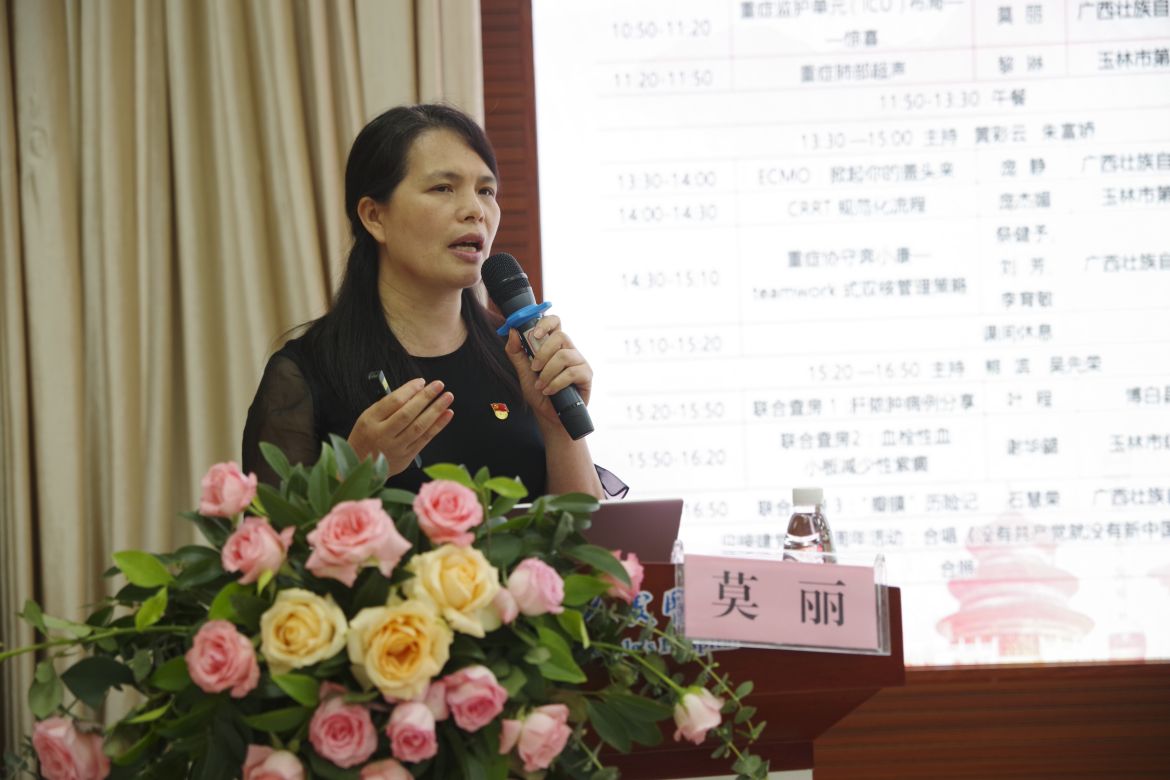 首先由广西重症医学分会主委熊滨教授给我们讲授了“液体反应指导休克的复苏治疗—PLR评估液体反应”专题,给基层医院危重症患者容量管理提供了更实用的技术。接着,向淑麟主任医师、庞静主任医师、莫丽副主任护师分别向大家带来《你一定见过的呼吸机波形》、《ECMO:掀起你的盖头来》、《重症监护单元布局的惊喜》等专题讲座给ICU的同道带来全新的危重症患者诊治视角。