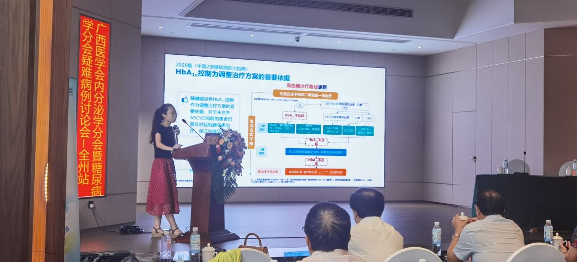 广西医学会内分泌学分会任委员秦映芬教授做主持,广西医学会内分泌学分会副主任委员周嘉教授围绕中国指南做了适合中国人群的血糖达标策略的专题讲座。深度解析了最新版中国2型糖尿病防治指南,为基层医院提供诊治参考,旨在加深基层医护人员对糖尿病诊治的认识,交流治疗方式,在治疗过程中合理利用医疗资源。