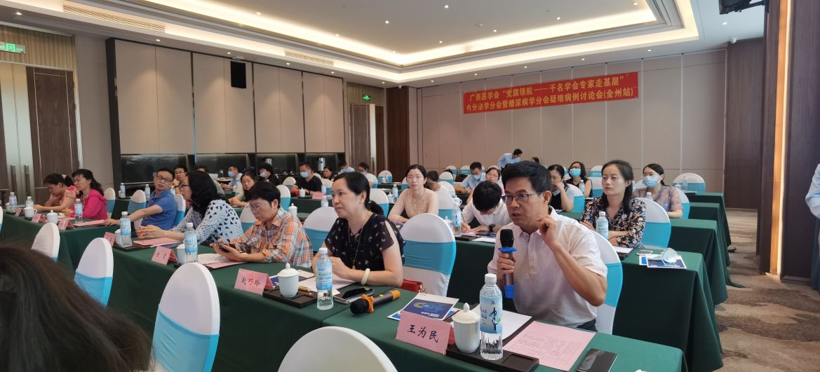 随后,桂林医学院附属医院黄漓莉医师、桂林市人民医院董玲医师、广西壮族自治区南溪山医院唐国方医师和桂林市中医院唐晨晨医师分别分享了糖尿病足、特殊类型糖尿病、性早熟病例,广西医科大学一附院罗佐杰教授、广西壮族自治区人民医院颜晓东主任、广西壮族自治区南溪山医院温玉洁主任、右江民族医学院附属医院王民登主任、广西壮族自治区江滨医院陈霞主任、广西壮族自治区民族医院赵巧玲主任和谢新荣主任、桂林医学院附属医院周素娴主任、南宁市第二人民医院王为民主任、桂林市人民医院黄萍主任、桂林市中医院张建德主任参与了病例讨论。
