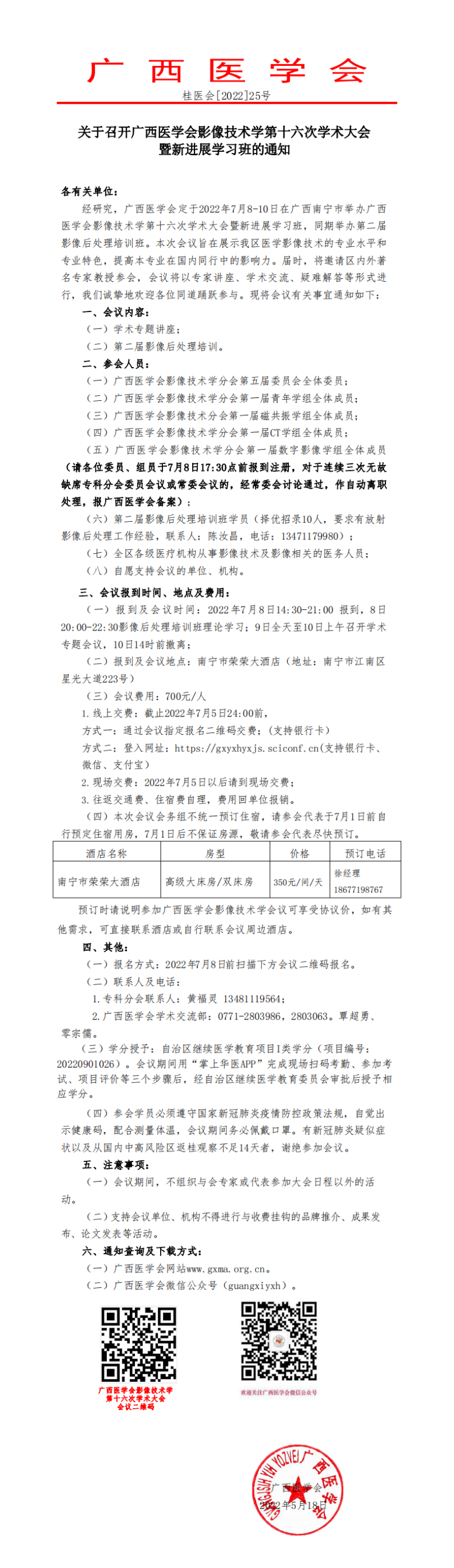 关于召开广西医学会放射学2022年学术年会的通知 (第一轮通知)