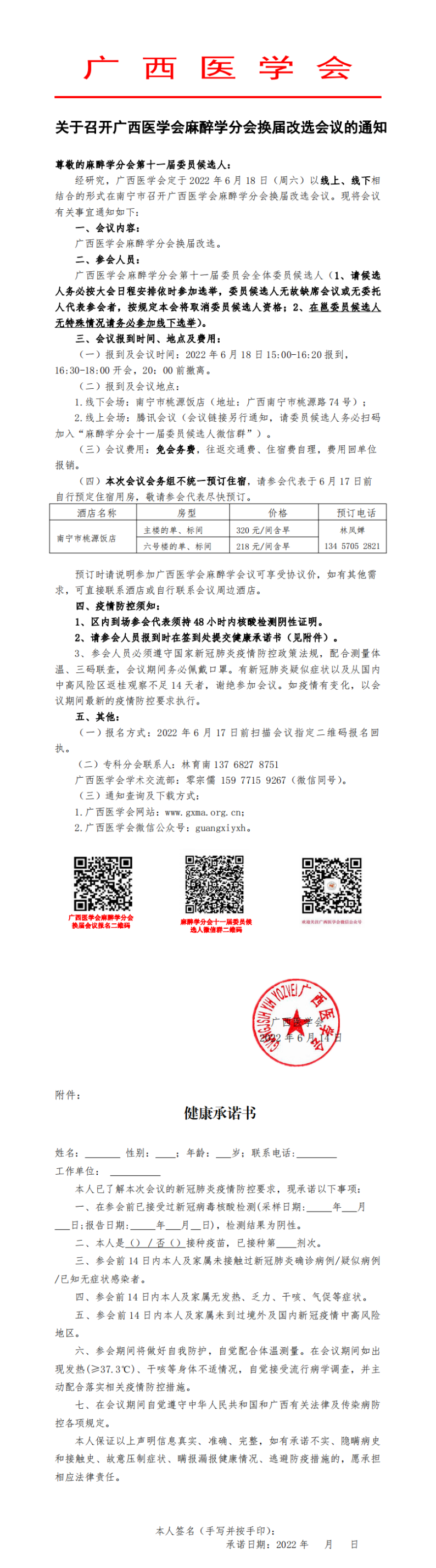 关于召开广西医学会麻醉学分会换届改选会议的通知