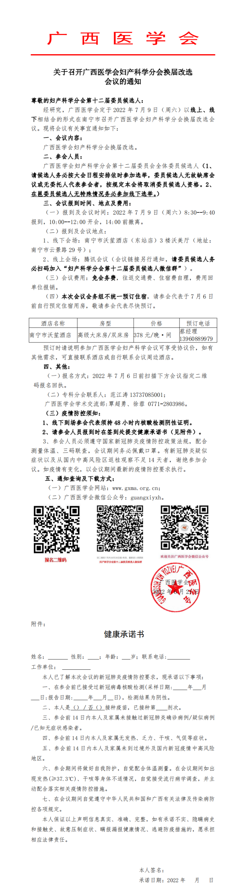 关于召开广西医学会妇产科学分会换届改选 会议的通知