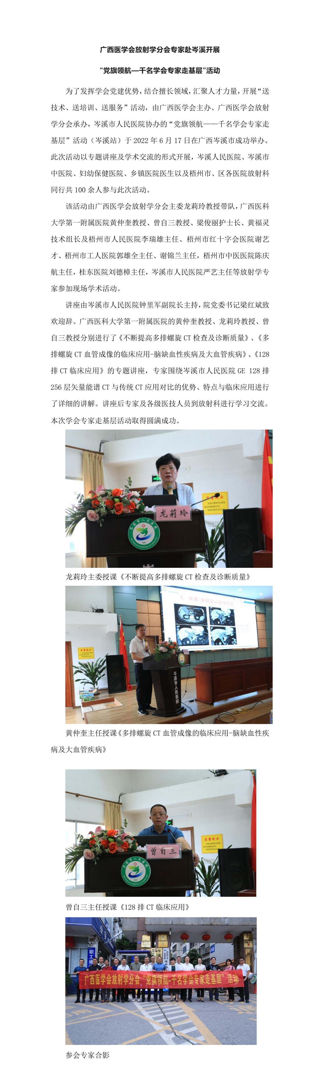 广西医学会放射学分会专家赴岑溪开展 “党旗领航—千名学会专家走基层”活动