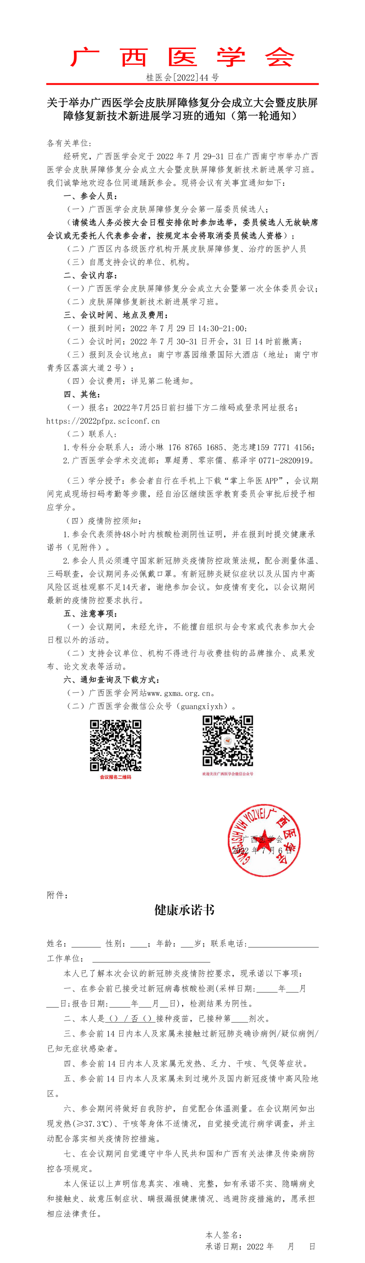 关于举办广西医学会皮肤屏障修复分会成立大会暨皮肤屏障修复新技术新进展学习班的通知(第一轮通知)