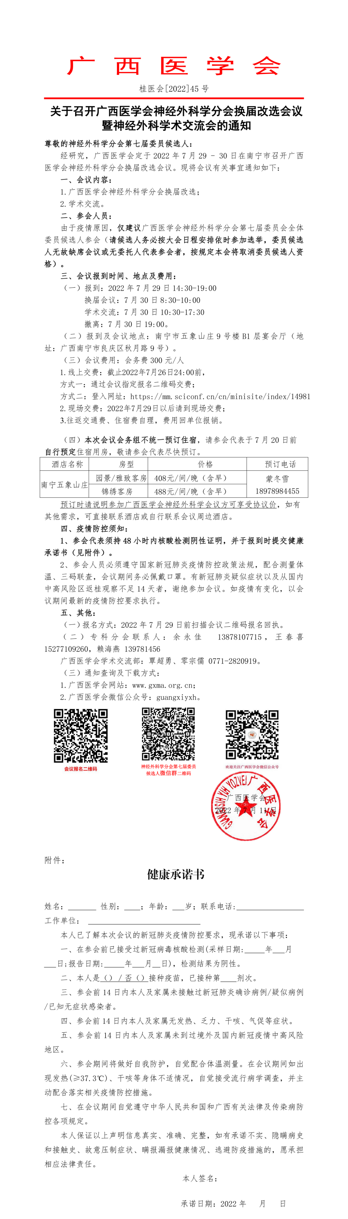 关于召开广西医学会神经外科学分会换届改选会议 暨神经外科学术交流会的通知