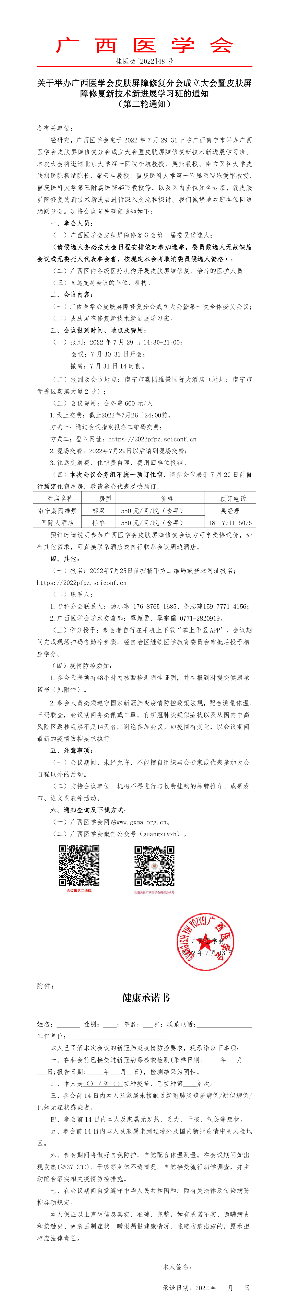 关于举办广西医学会皮肤屏障修复分会成立大会暨皮肤屏障修复新技术新进展学习班的通知 (第二轮通知)