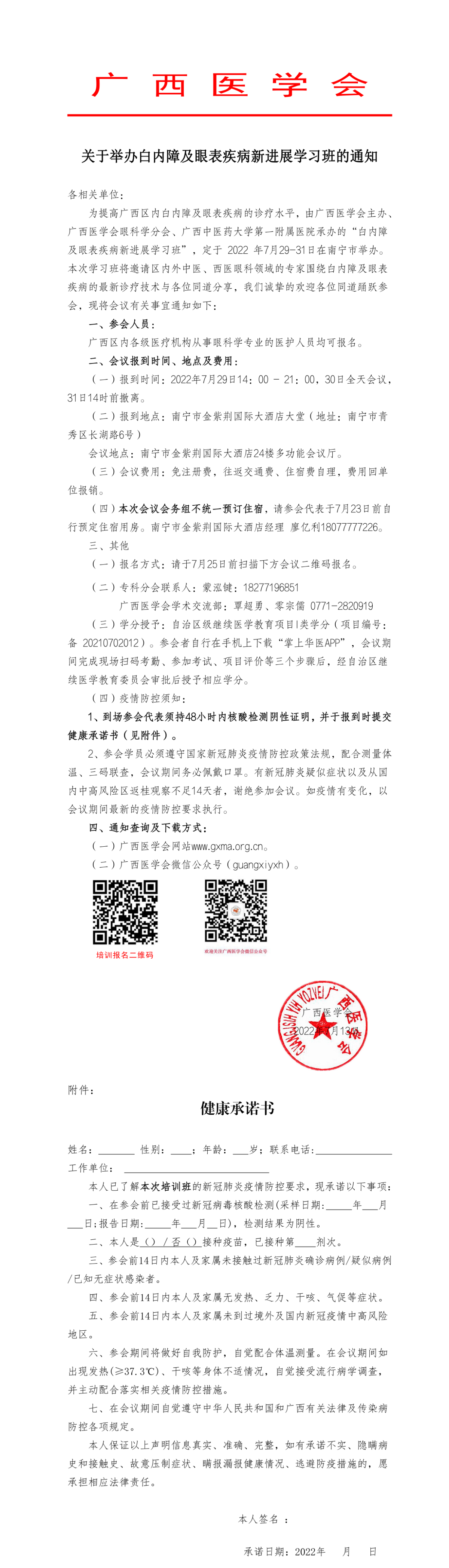 关于召开广西医学会科技创新与成果转化学分会成立大会暨医学成果转化核心能力建设培训班的通知